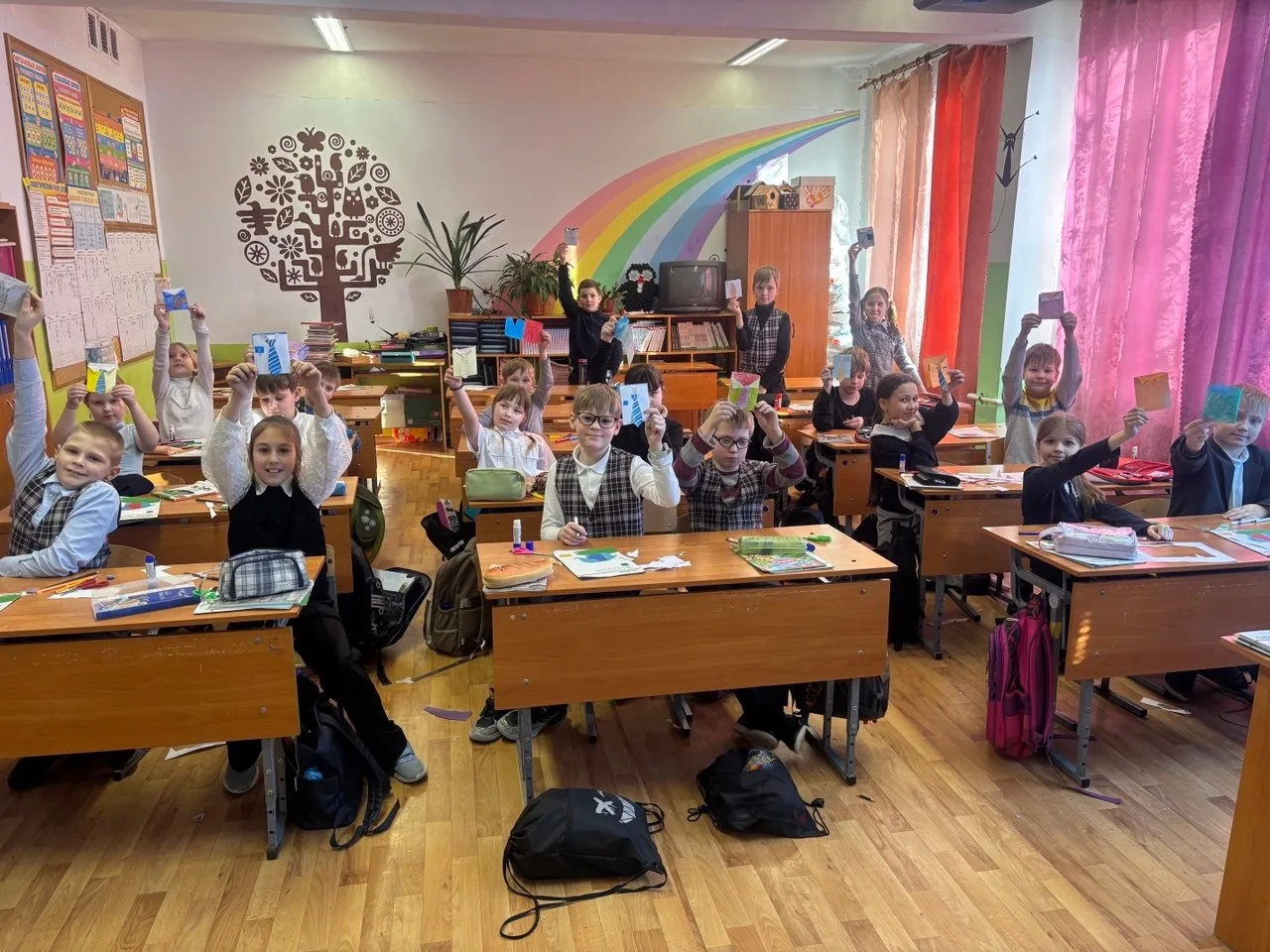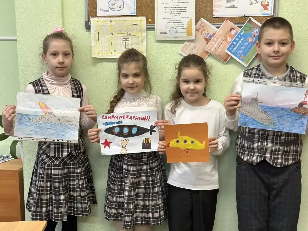 Смотрите, какие замечательные, красочные рисунки они приготовили для наших защитников! ✨