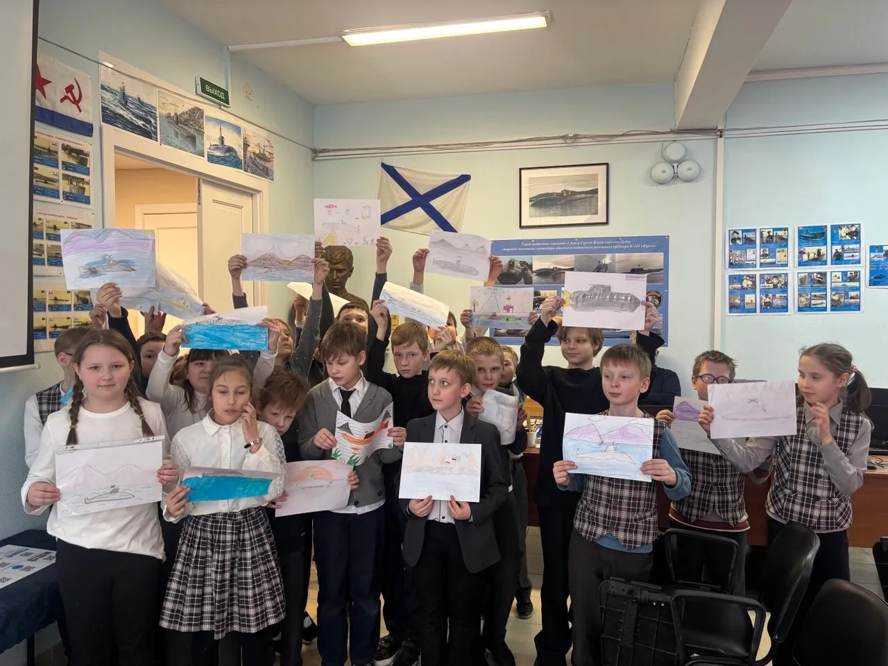 Юные посетители не только с интересом слушали Алексея Витальевича, но и решили внести свой вклад в сохранение памяти. В подарок музею дети передали свои рисунки, вдохновленные рассказом о герое.