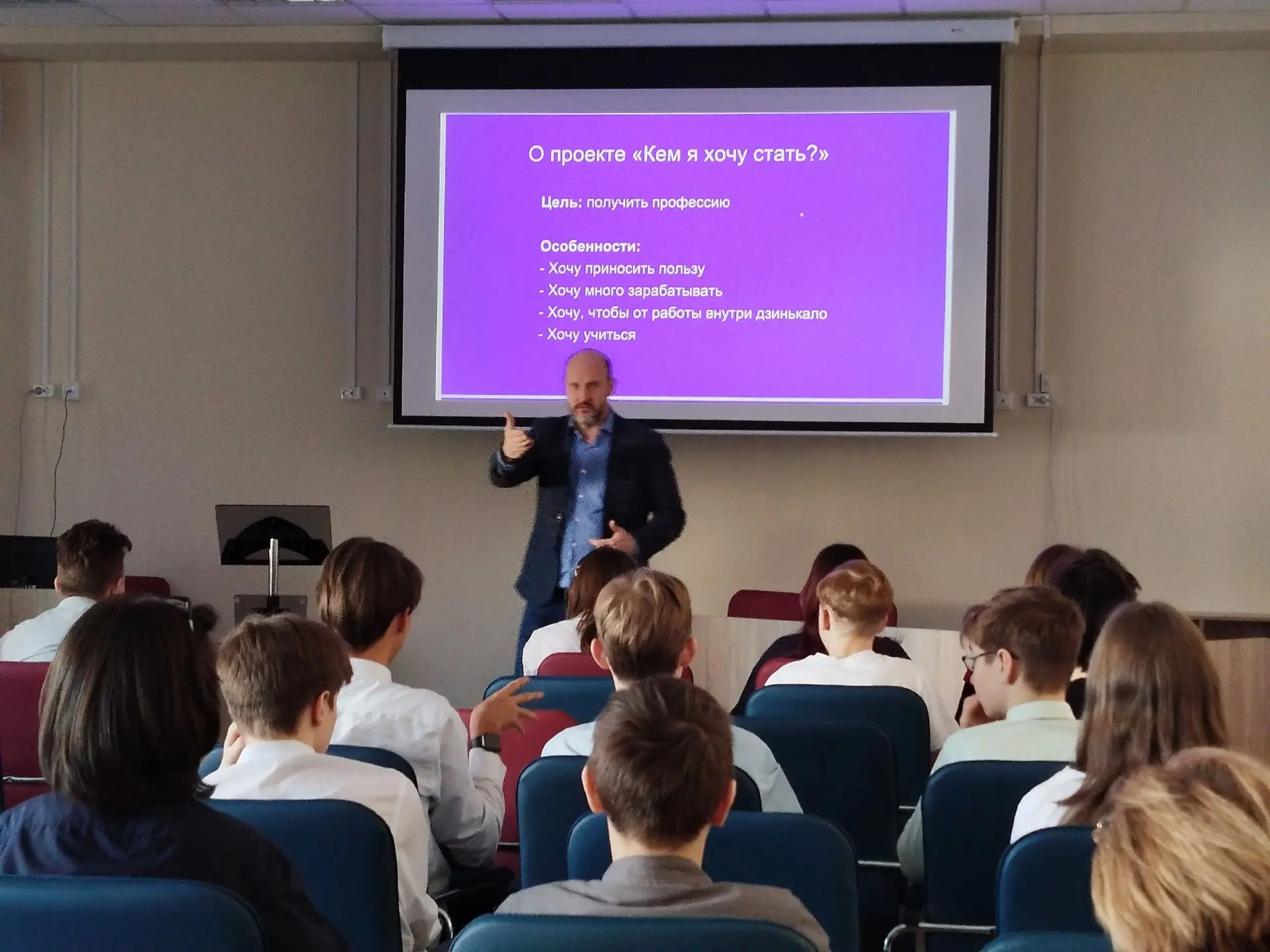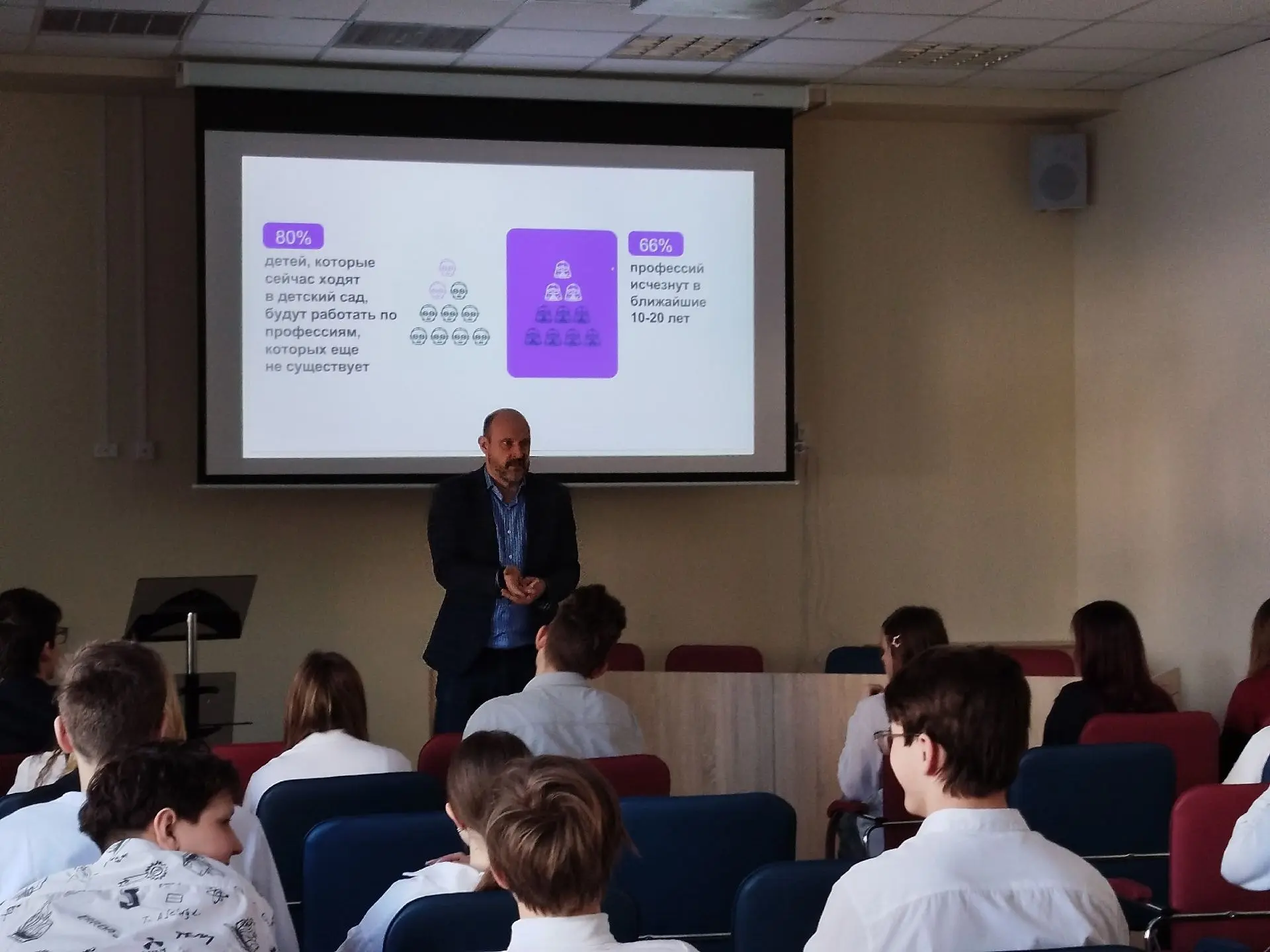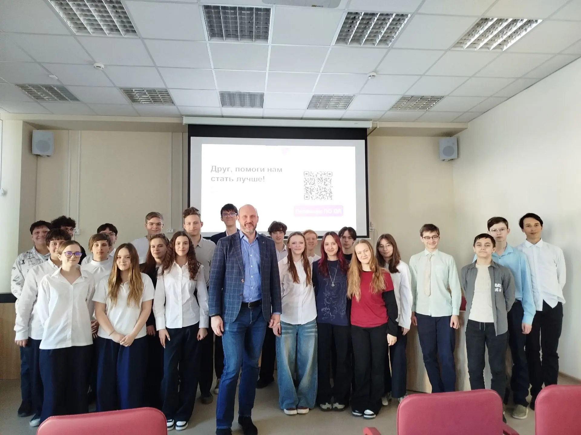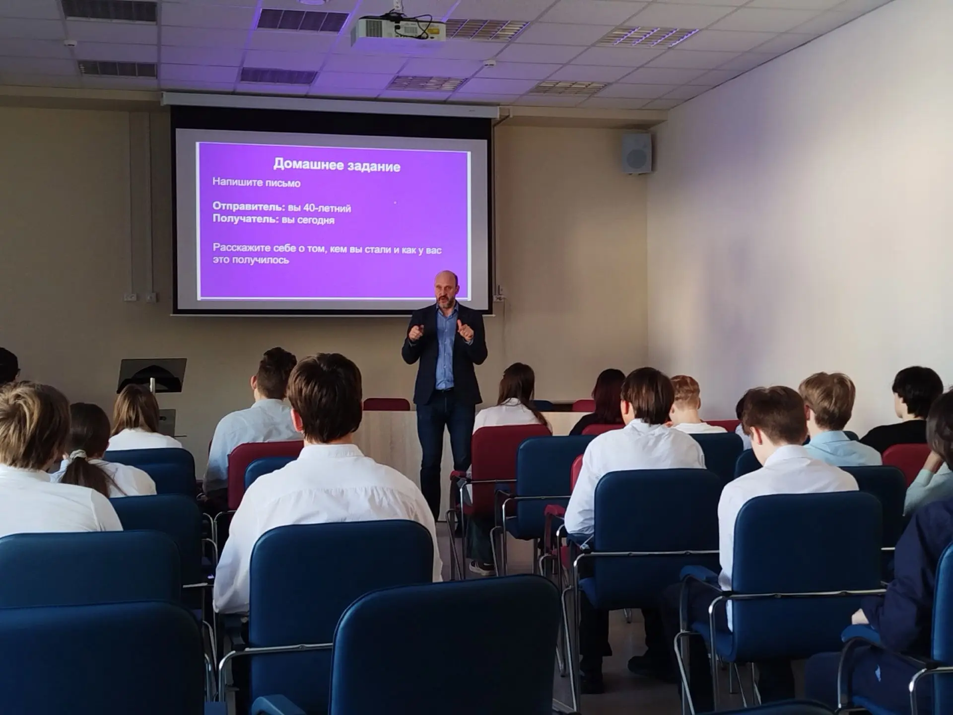 Перед 9 классами выступил Владимир Остроменский - Заведующий кафедрой акушерства и гинекологии с курсом репродуктивной медицины ЧОУ ДПО "Академия медицинского образования им. Ф.И. Иноземцева". Владимир рассказал ребятам о своём жизненном пути, раскрыл формулу собственного успеха.