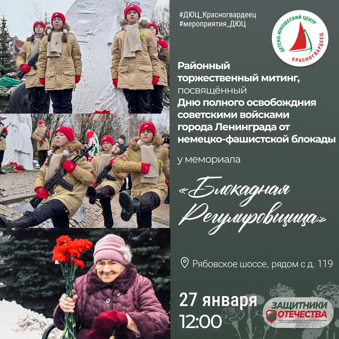 🙏 27 января в честь 82-летия полного освобождения Ленинграда от фашистской блокады состоится торжественный митинг у мемориала «Блокадная Регулировщица»