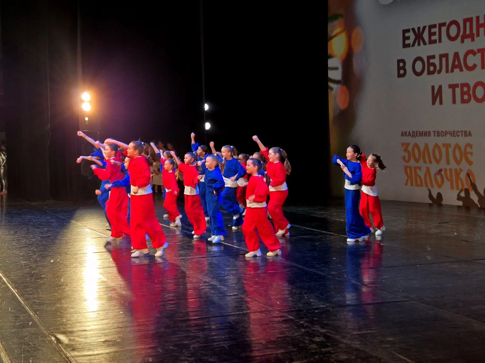 Наши юные артисты продемонстрировали свое мастерство, подарив зрителям яркие эмоции и незабываемые впечатления. Их выступление стало настоящим украшением Новогодней ежегодной премии "Золотое Яблочко", подтвердив высокий уровень подготовки и безграничный талант каждого участника ансамбля.