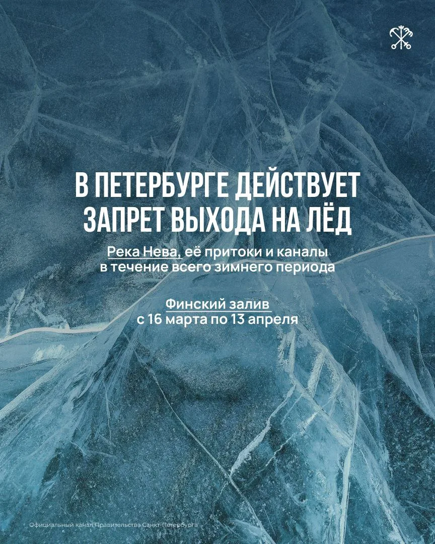 ❗ МЧС Петербурга призывает жителей и гостей города не выходить на лёд водоёмов.