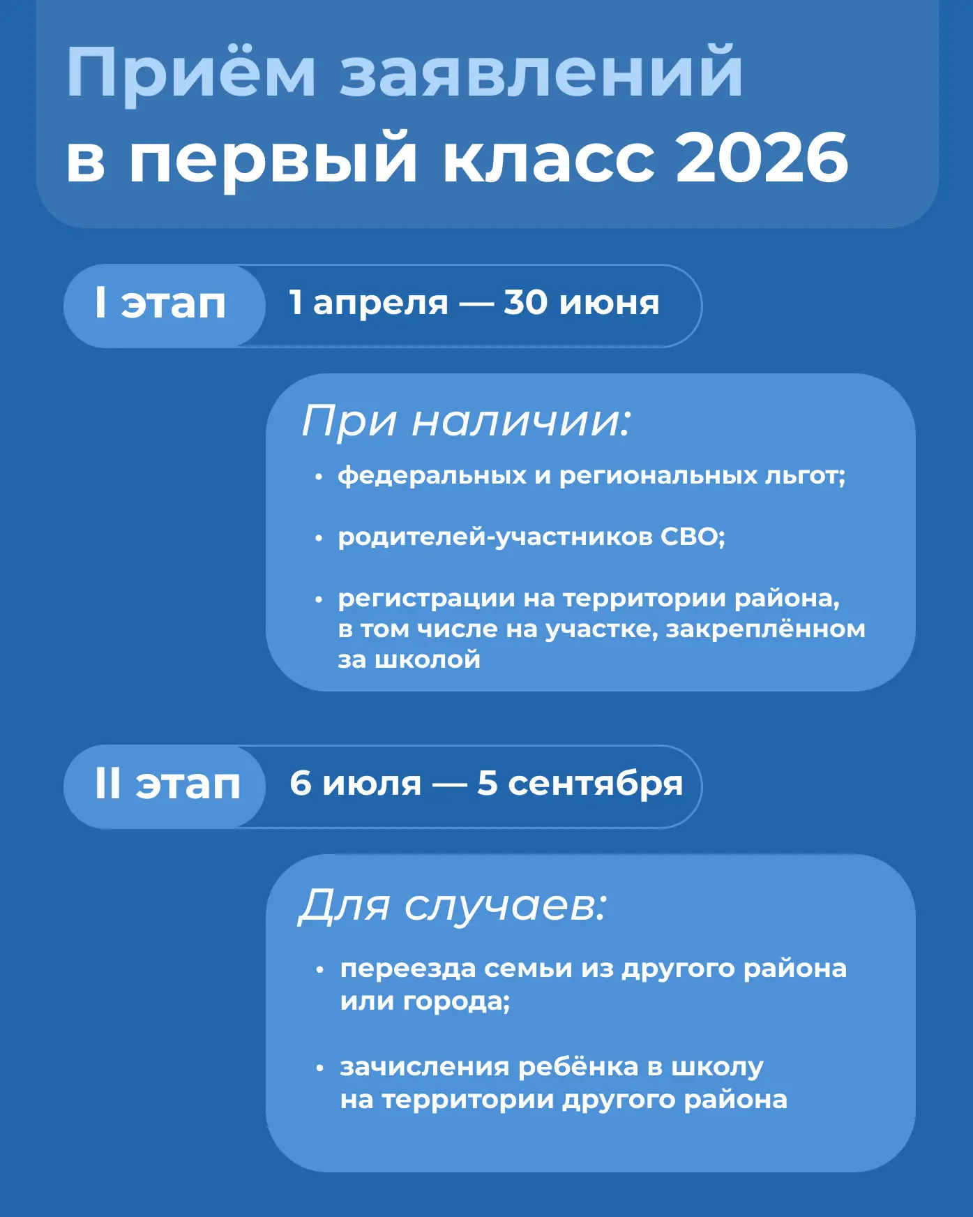«Поступление ребёнка в первый класс — важный этап для будущего школьника. И для образовательных организаций эта работа требует особой ответственности, её необходимо провести максимально качественно и в установленные сроки. По предварительной оценке, 1 сентября 2026 года за школьные парты сядут более 1,5 миллиона первоклассников», — отметил министр просвещения России Сергей Кравцов.