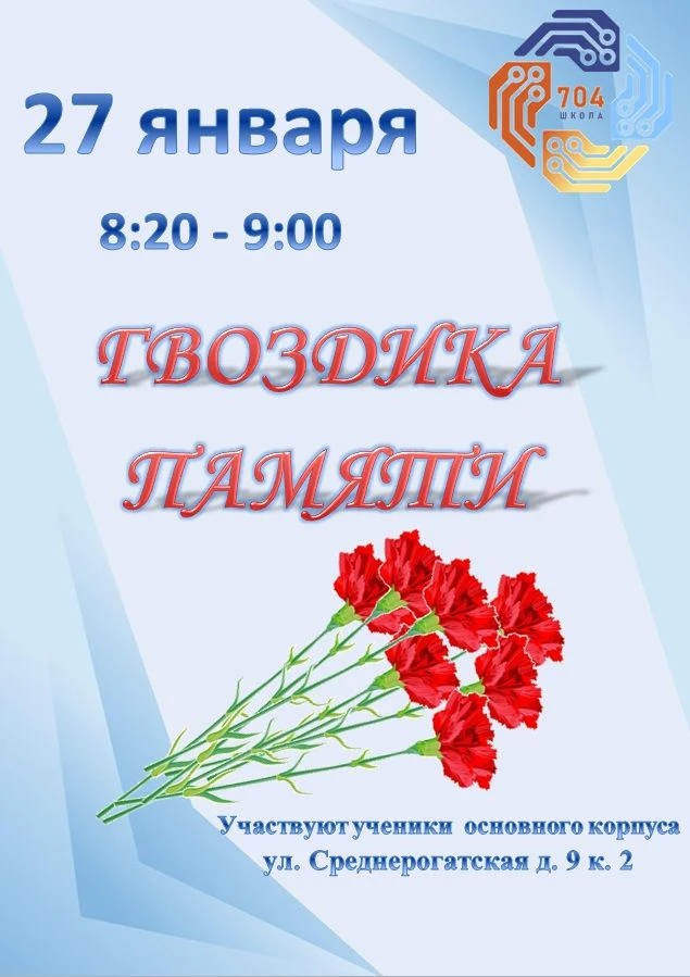 27 января, в основном здании будет проведена акция "Гвоздика Памяти", посвященная этой знаменательной для нашего города дате.