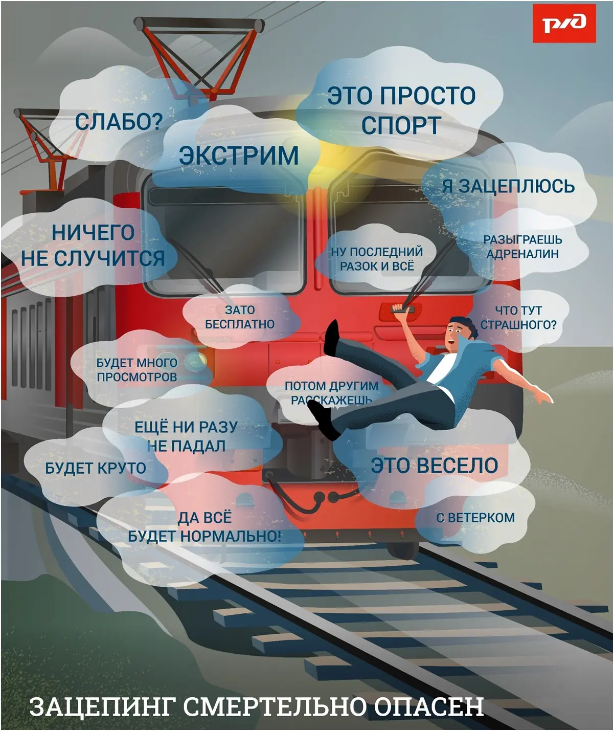 Зацепинг — это езда снаружи поездов, электричек, трамваев: на крышах, подножках, между вагонами. Некоторые считают это «экстремальным хобби» или способом сэкономить на проезде.