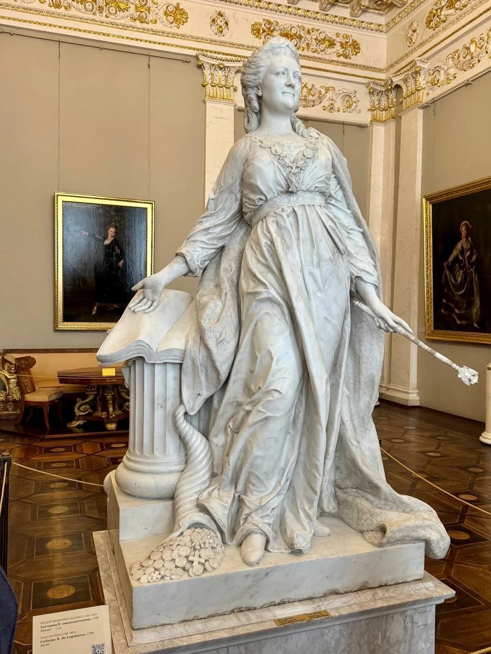 Рассмотрели уникальные произведения русской монументальной пластики XVIII- XIX веков «Анна Иоанновна с арапчонком» Бартоломео Карло Растрелли, беломраморную статую Федота Ивановича Шубина «Екатерина- законодательница», статую «Венера» Ивана Витали,