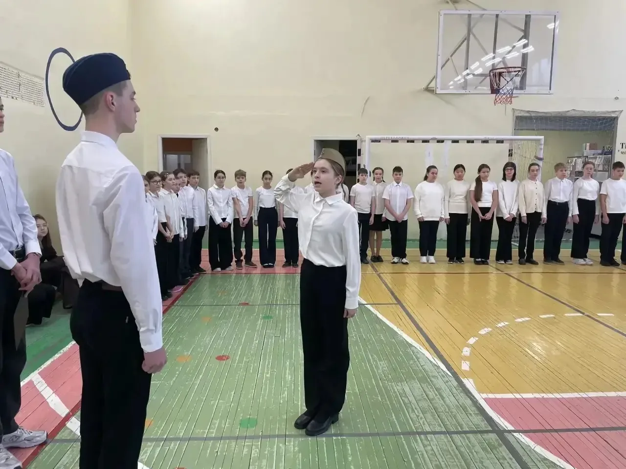 На днях в нашей школе царила атмосфера строевой подготовки и здорового соперничества. Пятиклассники продемонстрировали свои навыки в Смотре строя и песни, показав отличную слаженность.