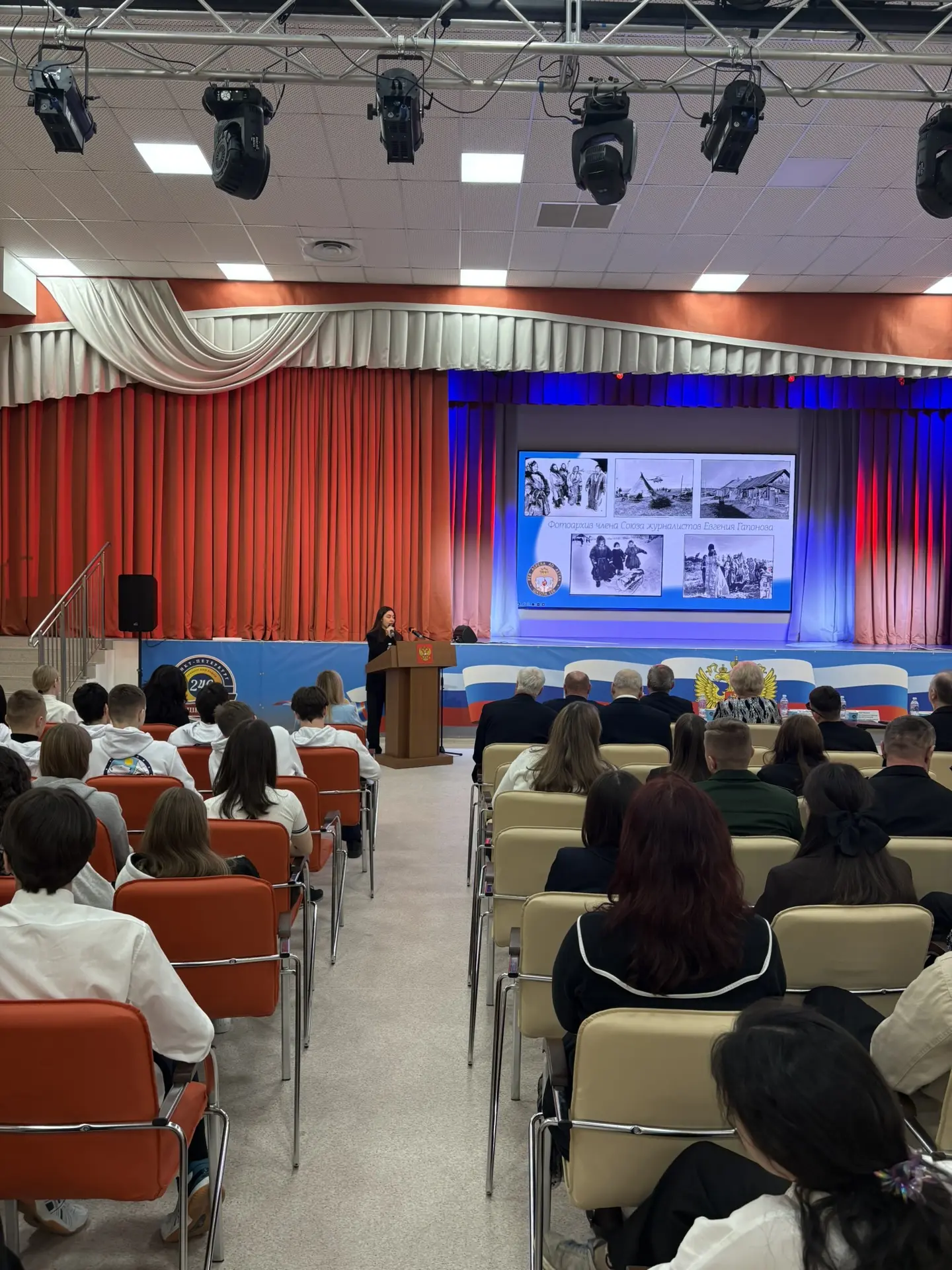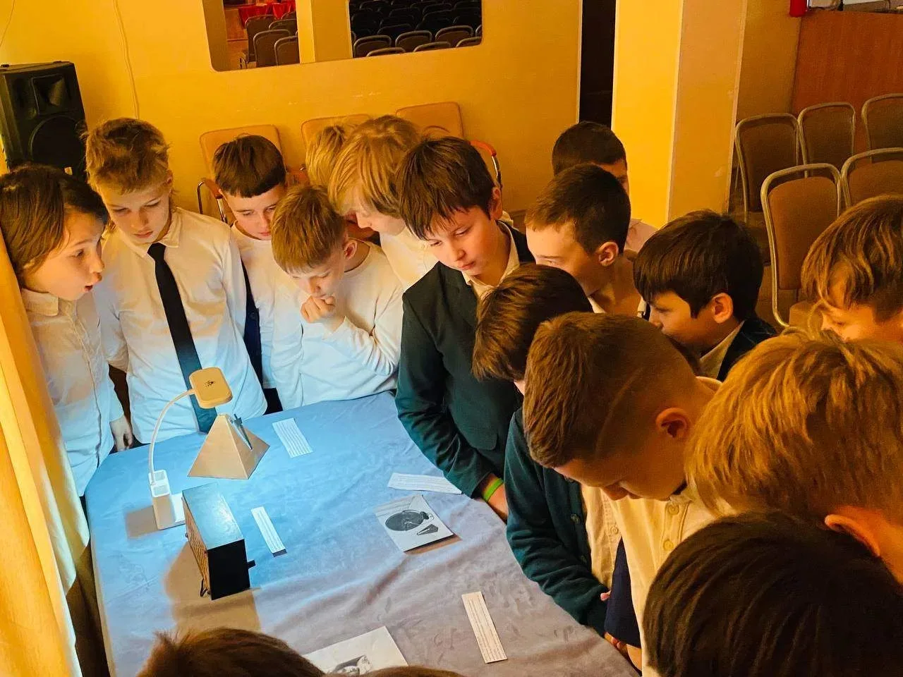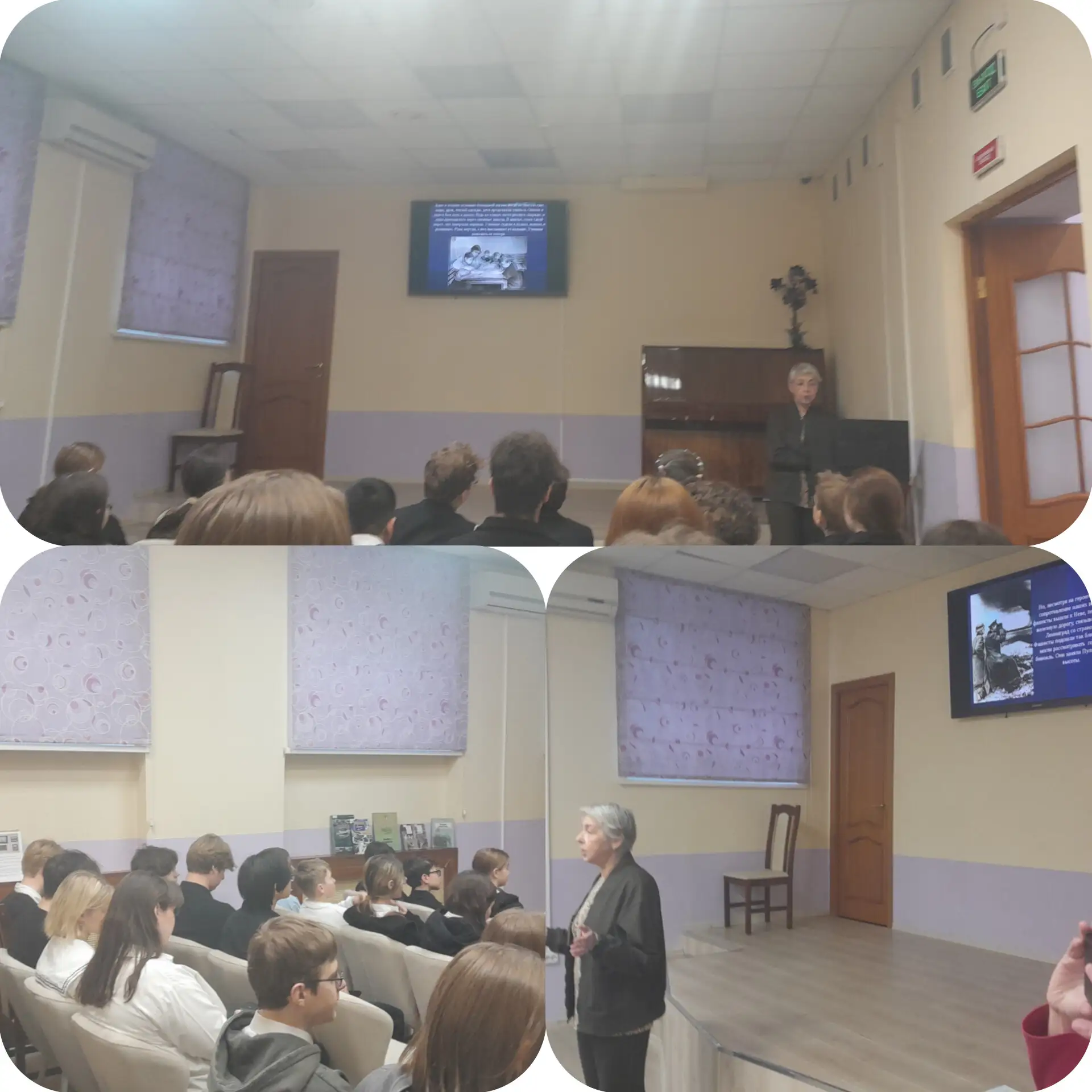 Мероприятие проходило в актовом зале школы и включало демонстрацию подлинных предметов военного периода, а также информацию об исторических объектах города.