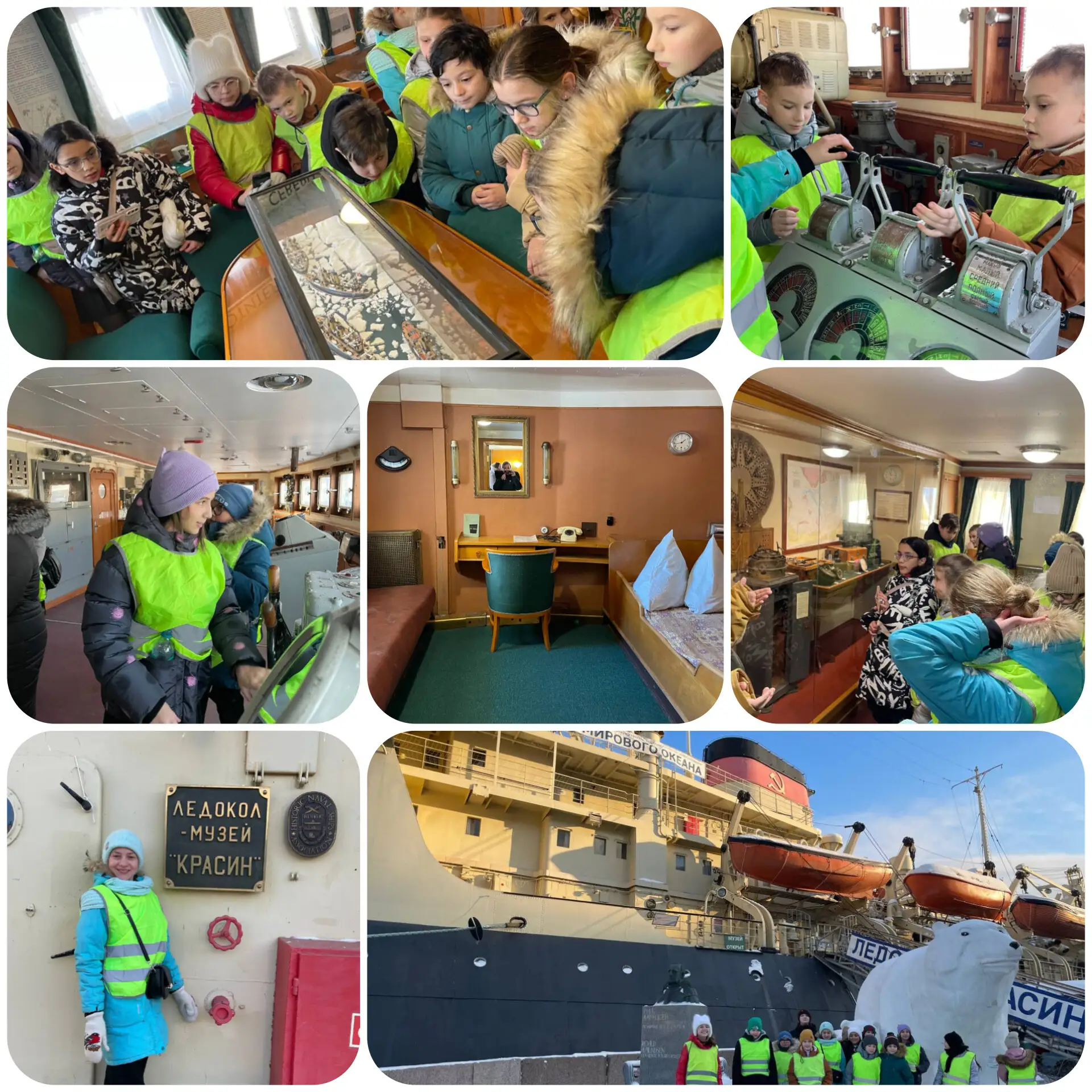 Особенно запомнилась возможность подержаться за штурвал, потрогать настоящее корабельное оборудование. Каждый на мгновение превратился в отважного полярного исследователя, представляя себя участником захватывающих экспедиций прошлого века.