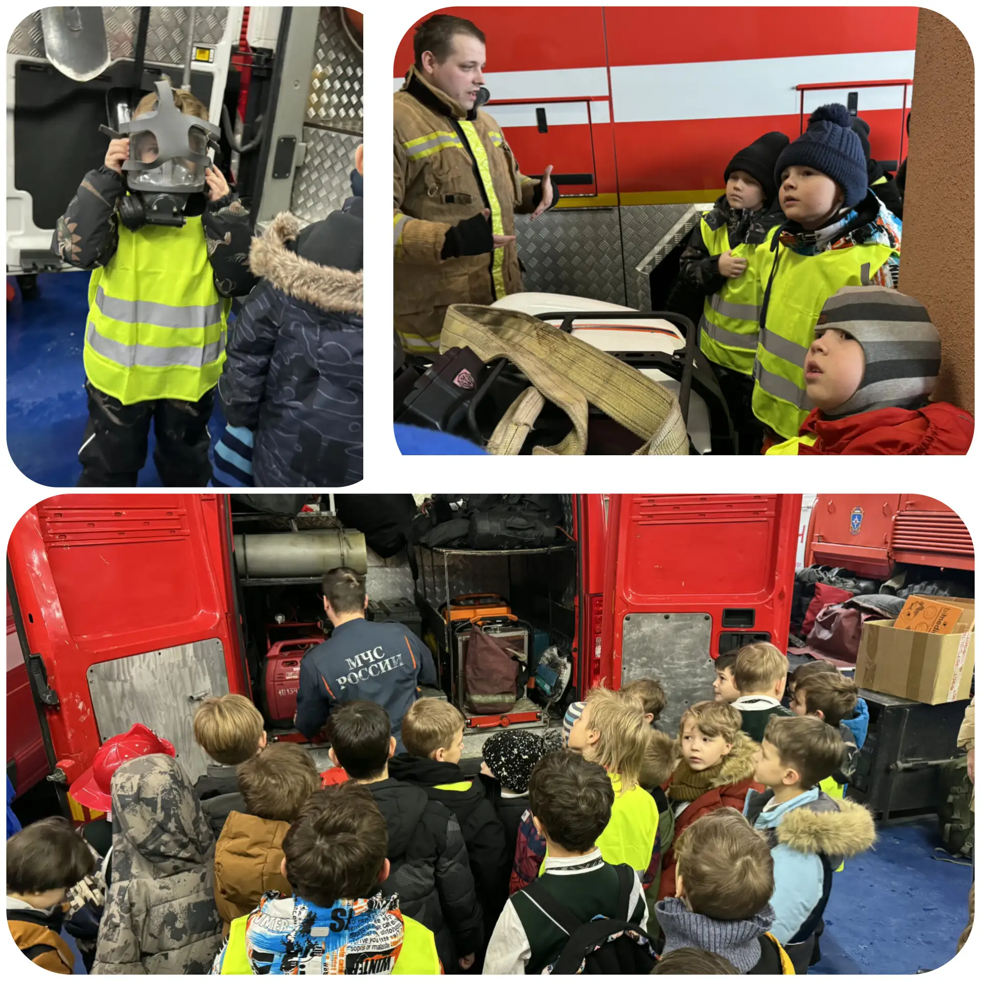 Мальчишек встретили очень гостеприимно: сначала провели подробный инструктаж по технике безопасности, а затем — увлекательную экскурсию по части. Было интересно увидеть, как устроена повседневная жизнь пожарных: от диспетчерской до гаражного бокса с техникой, а также познакомиться со снаряжением, которое используется в чрезвычайных ситуациях.