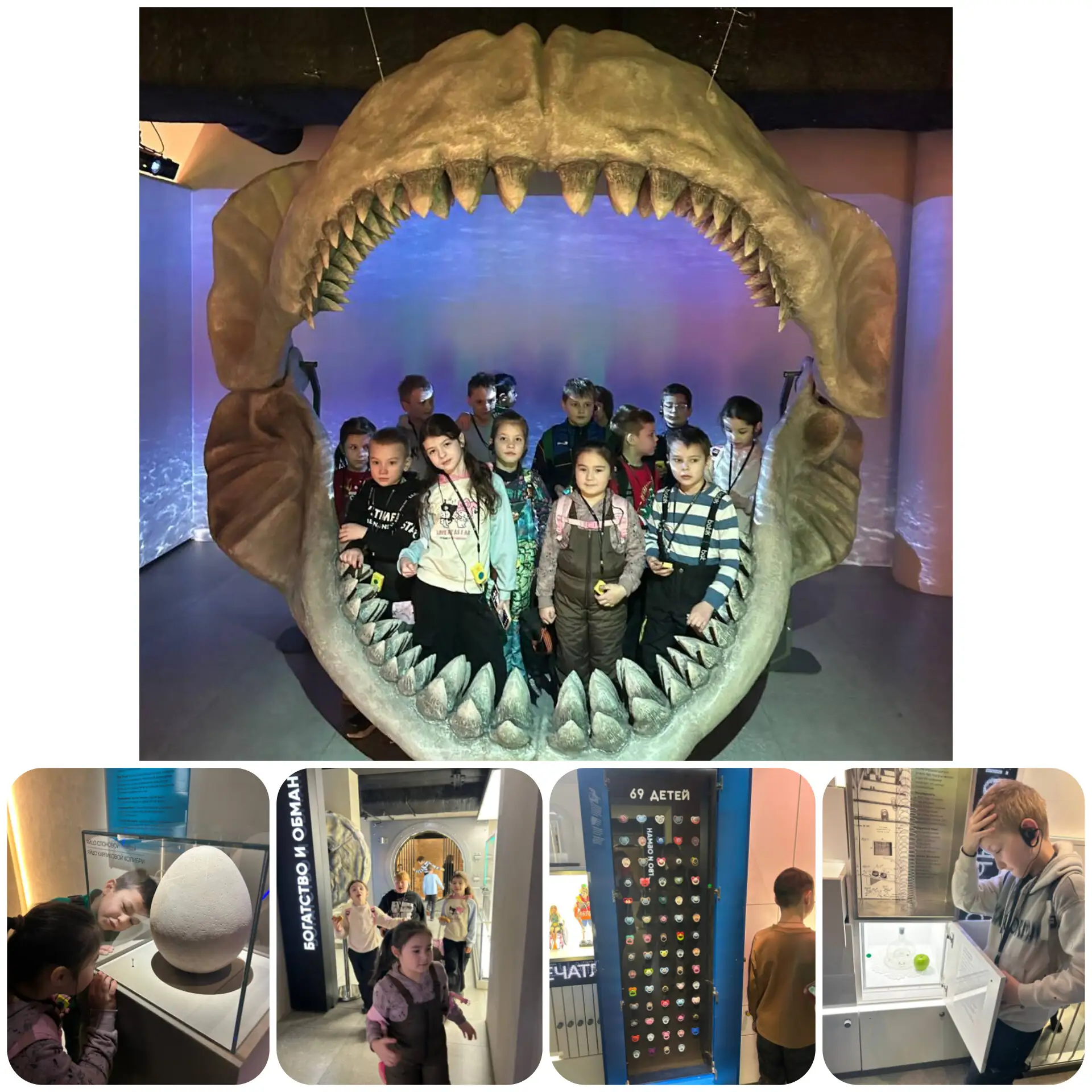 Интересная экскурсия по музею невероятных фактов со всего мира для 1б класса. Каждый экспонат привлекал своей историей, рассказанной через арт-объект. Ребята узнали много интересного из области географии, биологии,этнологии и астрономии. Очень интересно было узнать , сможет ли кто-то из ребят достать золотой слиток из специального прозрачного ящика или же поставить яйцо на шляпку гвоздика? Ребятам продемонстрировали самое большое и самое маленькое яйцо в мире, они смогли сравнить себя с самым высоким человеком в мире и узнать, какой их вес в чупа-чупсах.Узнали, сколько тонн краски требуется для того, чтобы покрасить Эйфелеву башню , подержали в руках настоящий метеорит , почувствовали запах самого большого цветка в мире и увидели тайные ячейки интерактивного архива.