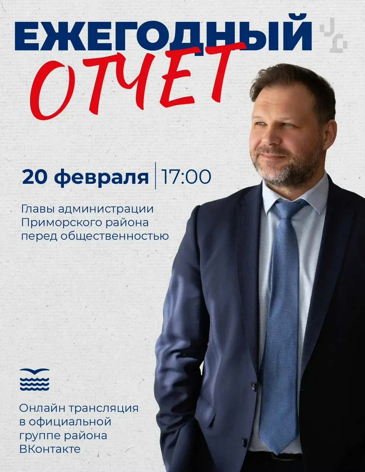 Сегодня, 20 февраля, в 17:00 состоится ежегодный отчет администрации Приморского района перед общественностью