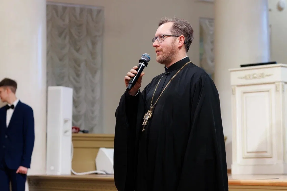 Иерей Андрей Ковальчук открыл конференцию своим докладом «От сердца к действию: доброта, милосердие, сострадание и благодарность в призме евангельского учения», раскрывая в своём выступлении значение ценностных ориентиров в педагогической работе. Приводя примеры из творений святых отцов Церкви, отец Андрей призывал учителей черпать духовные и творческие силы в источнике православной веры, прививать обучающимся понимание своей личности как «генератора» любви к людям, миру, формировать в них деятельную волю, способность принимать трудности и быть благодарным Богу.