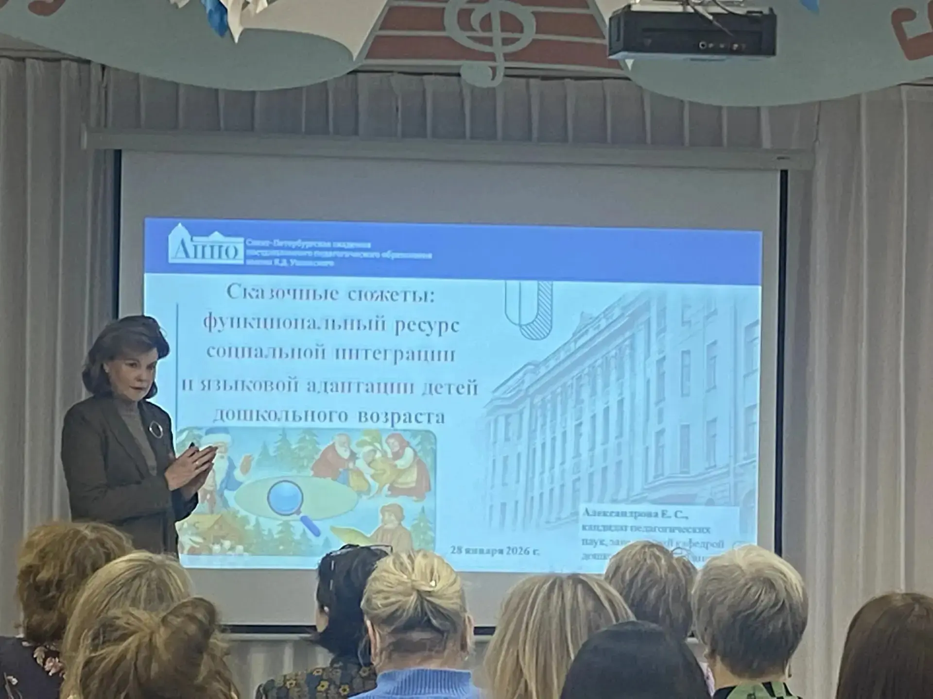 28 января 2026 года на базе ГБДОУ «Детский сад №92» состоялось методическое объединение старших воспитателей дошкольных образовательных учреждений (ГБДОУ) и отделений дошкольного образования детей (ОДОД) школ ГБОУ. Тема встречи: «Сказочные сюжеты: функциональный ресурс социальной интеграции и языковой адаптации детей дошкольного возраста».