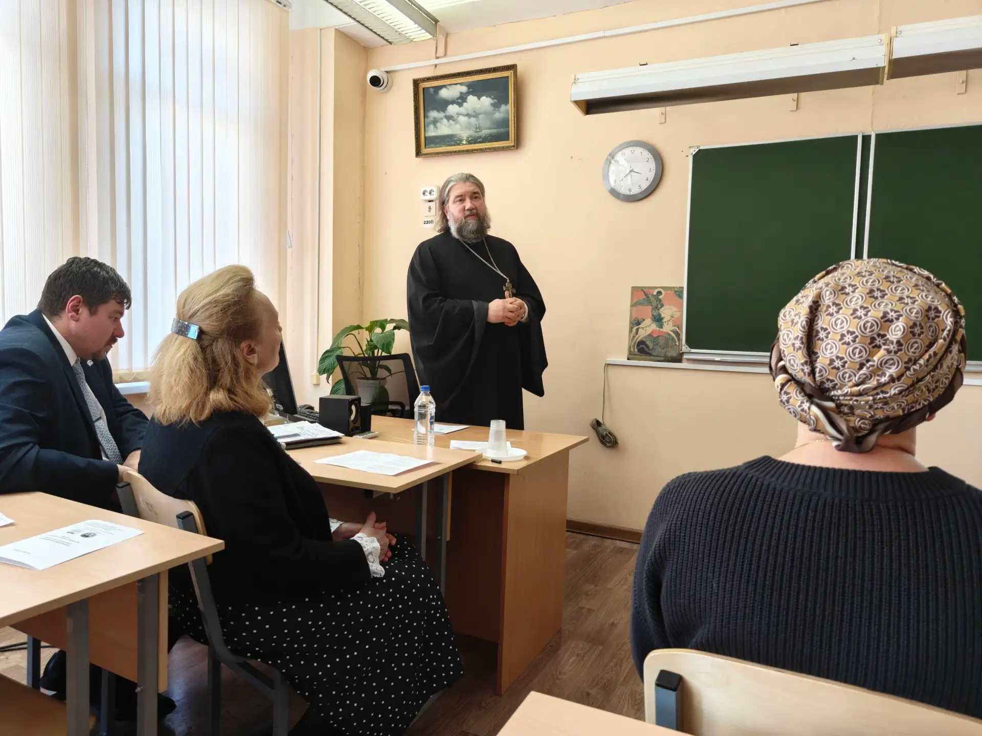 Конференцию открыла директор школы Валерия Анатольевна Якимова. С приветственным словом также выступили иерей Андрей Ковальчук, директор Центра духовной культуры и образования Приморского благочиния, и методист ГБУ «Информационно-методический центр» Приморского района Леликов Иван Сергеевич.