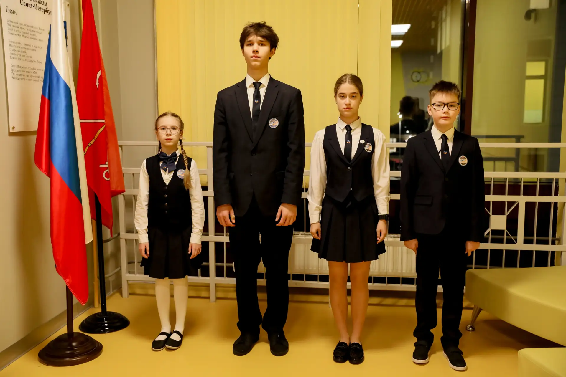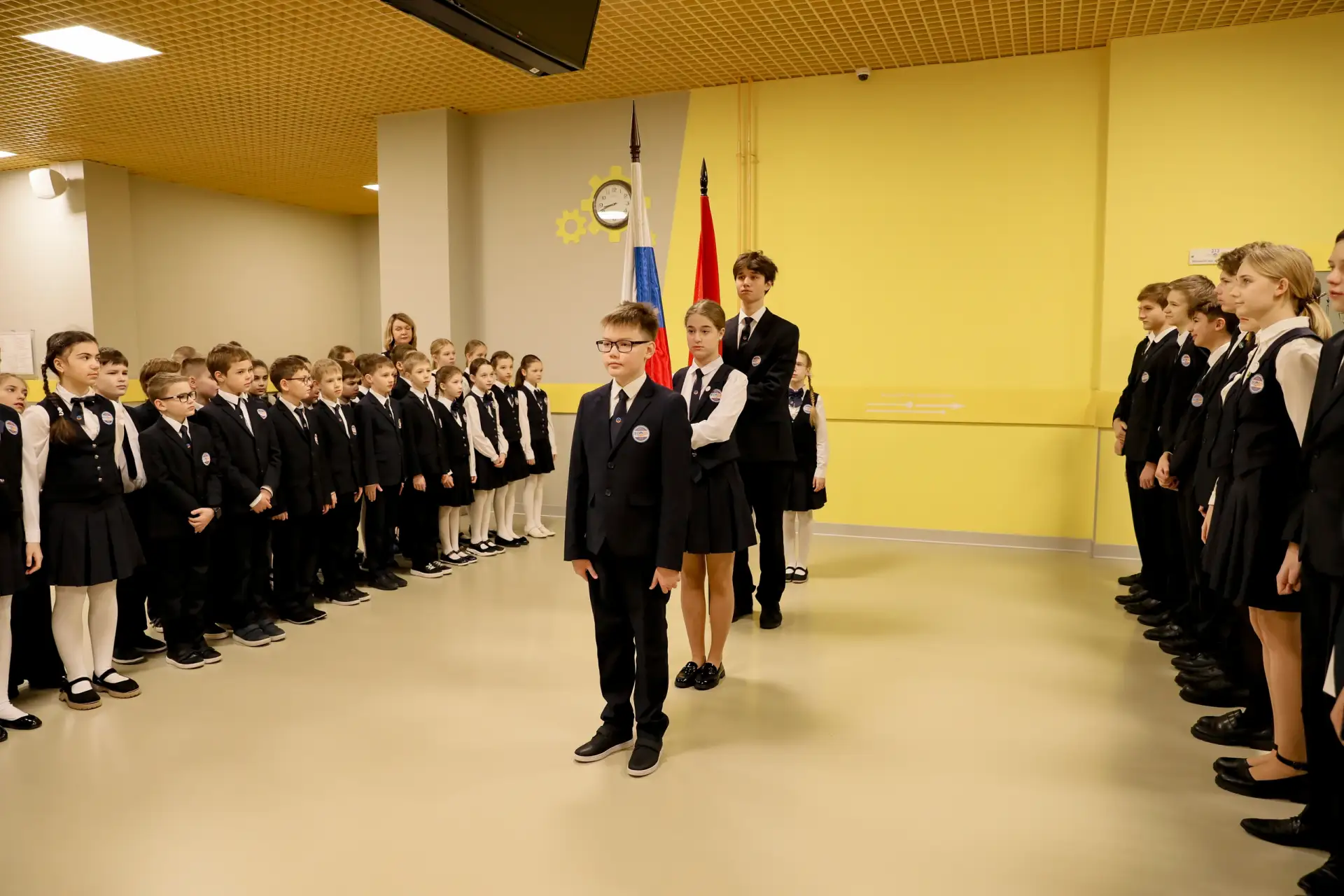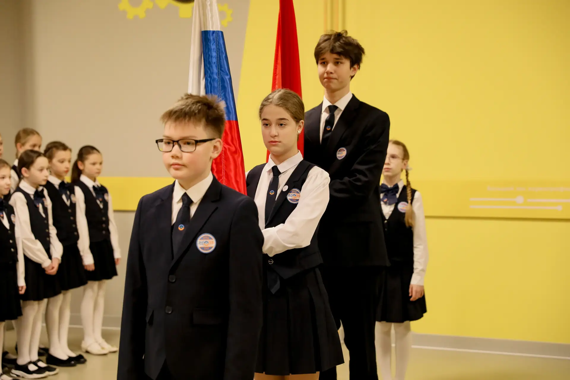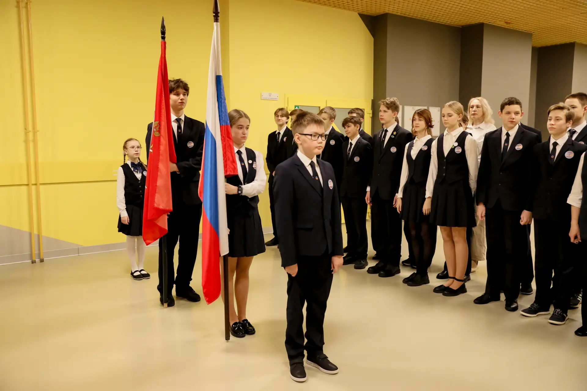 Сегодня почётное право поднять флаги было предоставлено обучающимся, успешно осваивающим образовательную программу на «хорошо» и «отлично»: