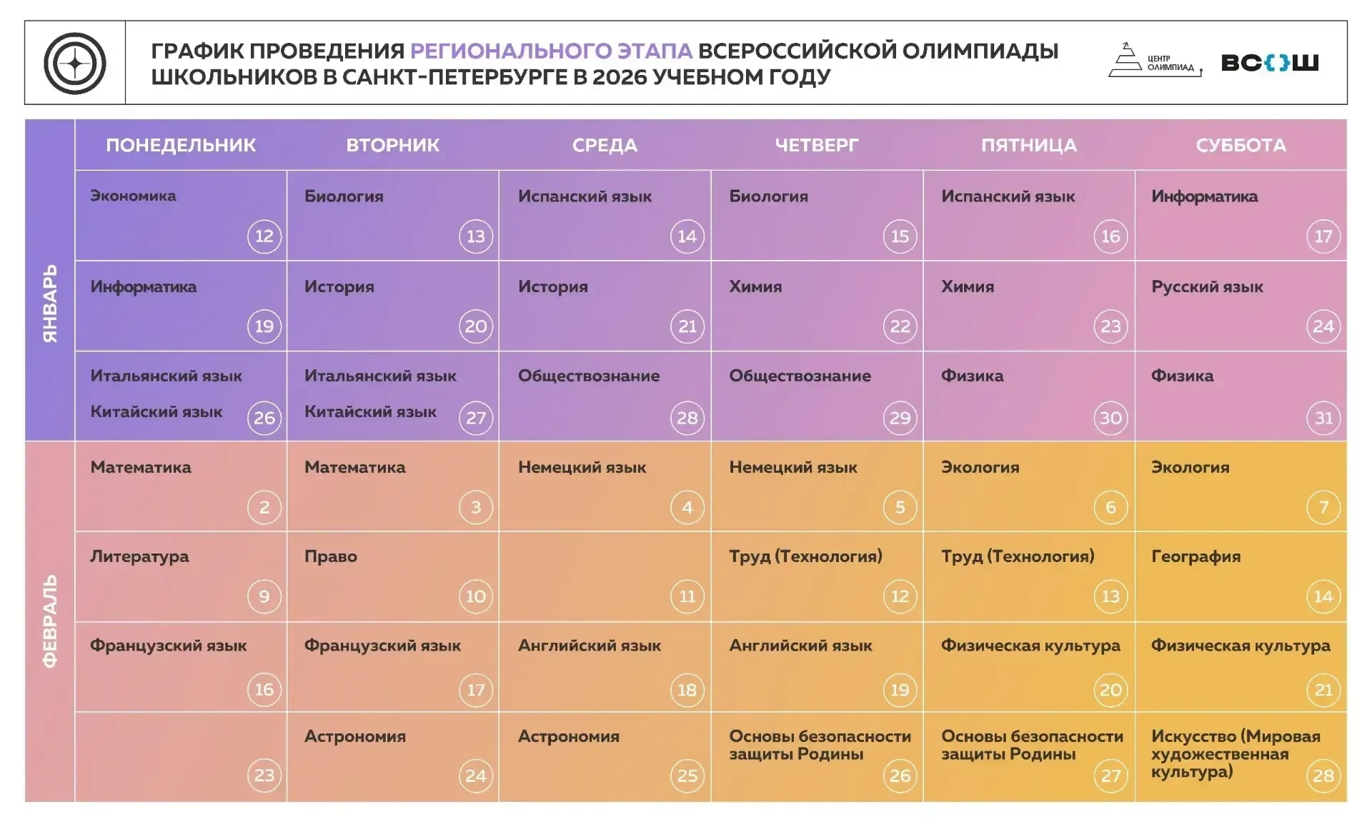С 12 января начался региональный этап Всероссийской олимпиады школьников. Участие в региональном этапе примут обучающиеся 9–11 классов, успешно прошедшие предыдущие этапы.