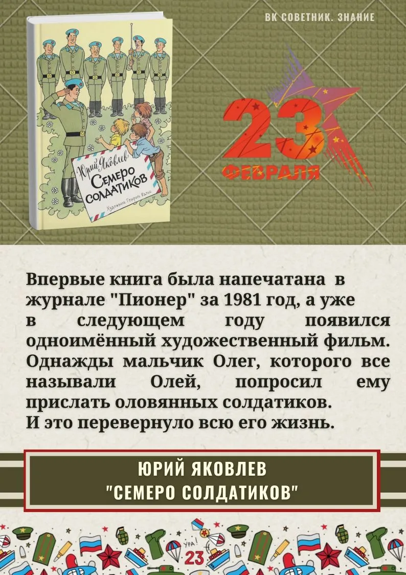 📚 Рекомендуем интересные книги для детей о воинах смелых и честных, любящих свою Родину. О мальчишках, которым не чужды шалости и забавы, но при этом они обладают важными человеческими качествами. Они готовы защитит слабого, придут на помощь в трудную минуту, сумеют противостоять злу и несправедливости. Именно из таких мальчишек вырастают настоящие мужчины!