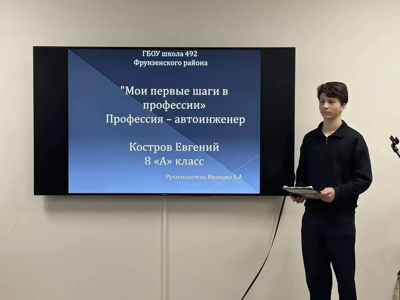20 января ученики 8А класса Пархаева Полина, Барышников Иван, Костров Евгений приняли участие в районном этапе Регионального профориентационного конкурса мультимедийных презентаций