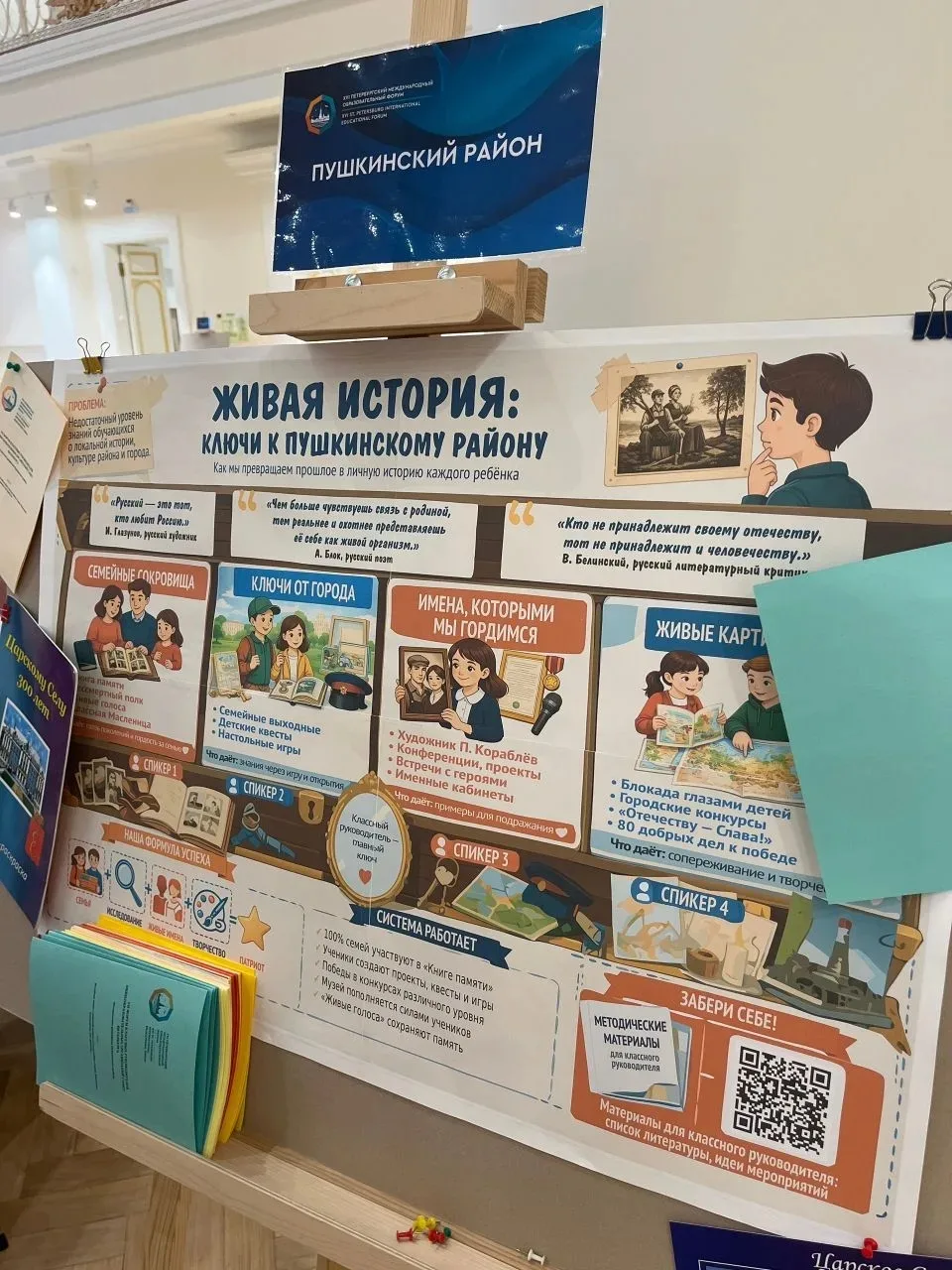 В своем выступлении педагоги представили стендовый доклад и совместно созданный буклет с методическими разработками: экскурсиями, квестами, играми и викторинами по истории Царского Села.