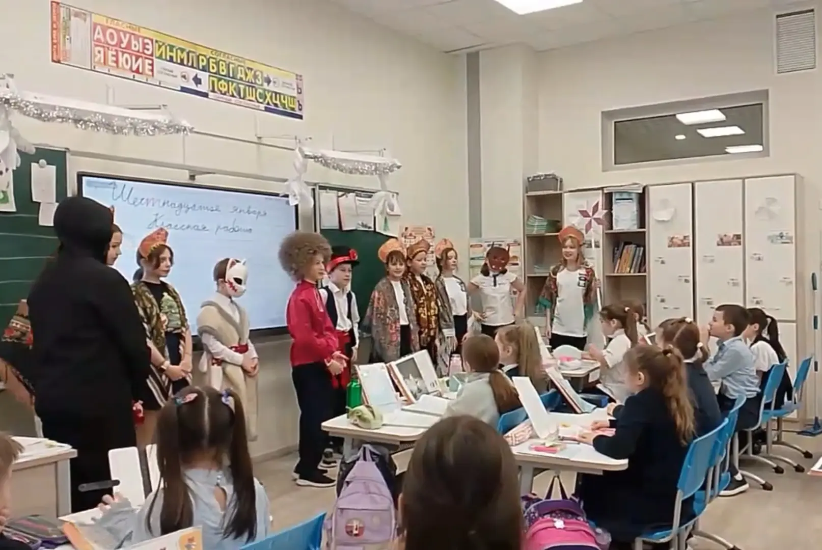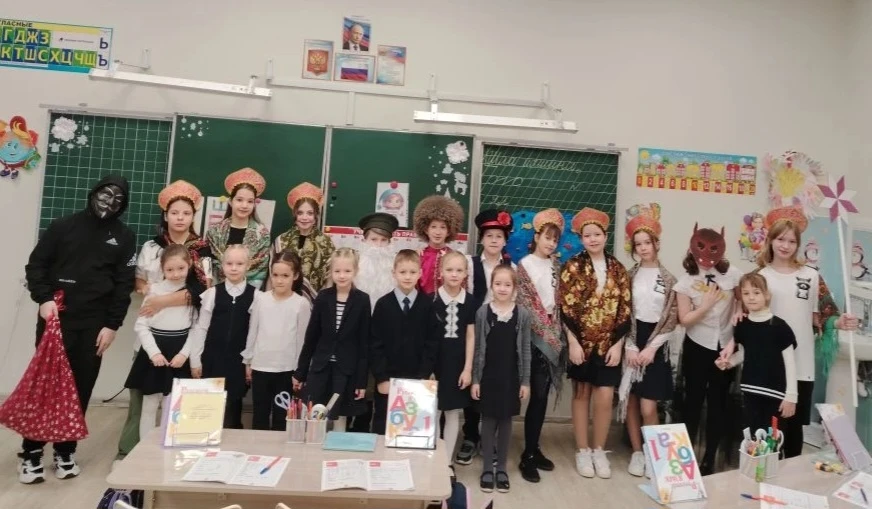 5е класс сегодня побывал в гостях у начальной школы - сейчас в разгаре Святочная неделя, поэтому пятиклассники вспомнили о такой традиции как колядование и напомнили о ней младшим школьникам 1-4 классов🎄🎉.