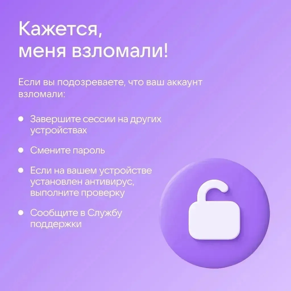 Как не попасться и что делать, если аккаунт всё же взломали, — рассказали в карточках.
