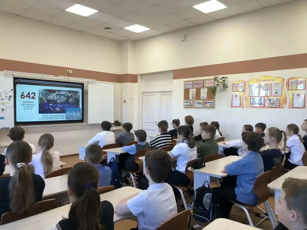 🔭После исторического обзора учащиеся познакомились с основными направлениями космической деятельности, а в конце урока посмотрели кадры старта Ю. А. Гагарина в космос.