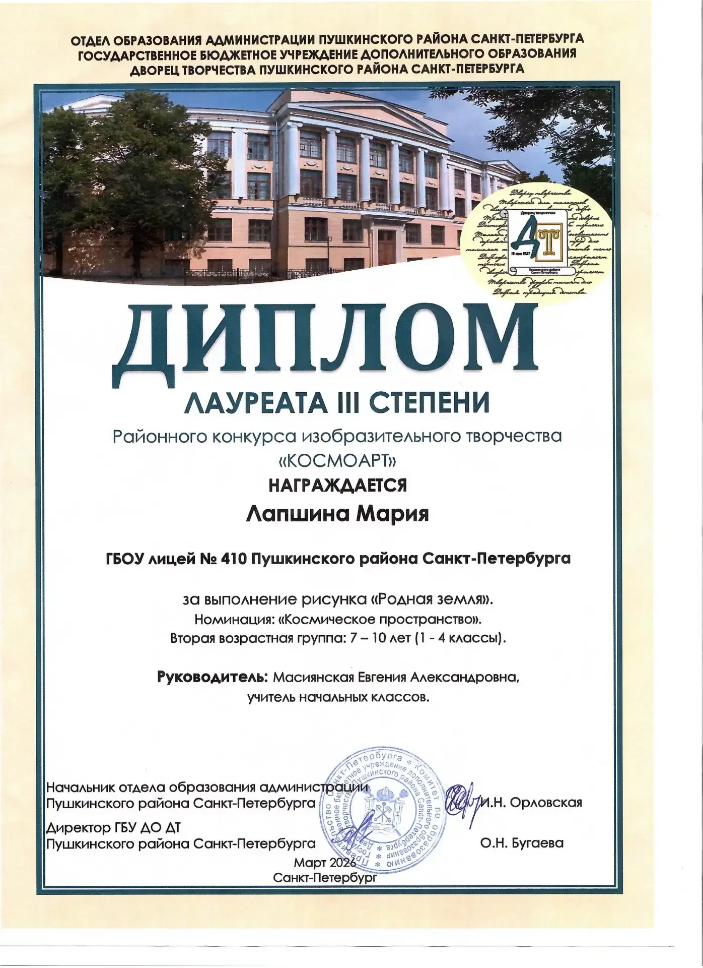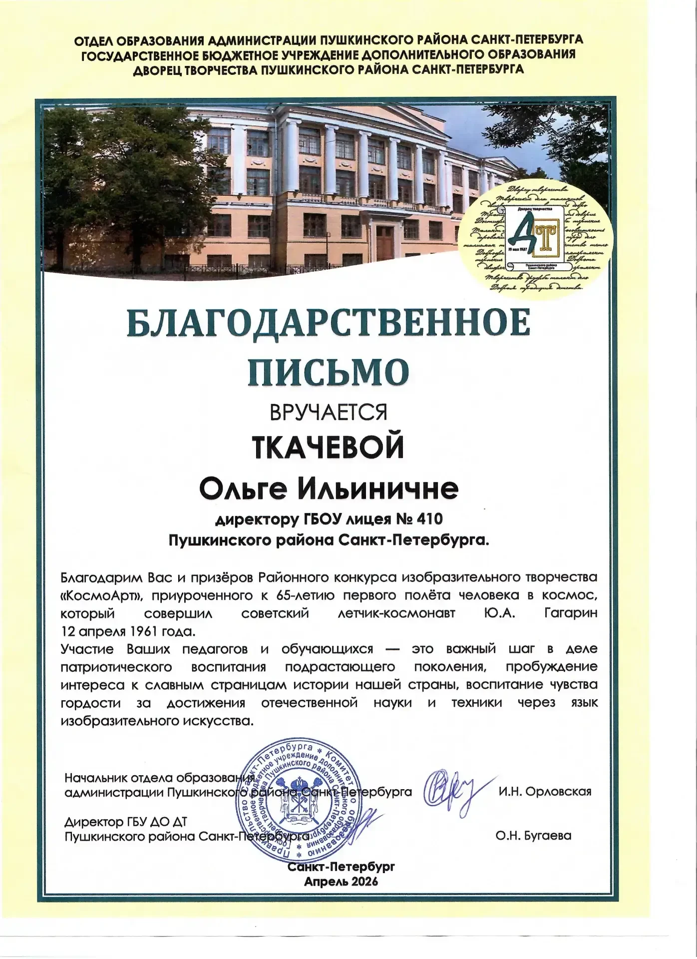 - ГБОУ лицей № 410 Пушкинского района Санкт-Петербурга;