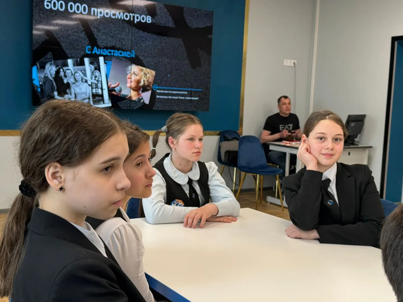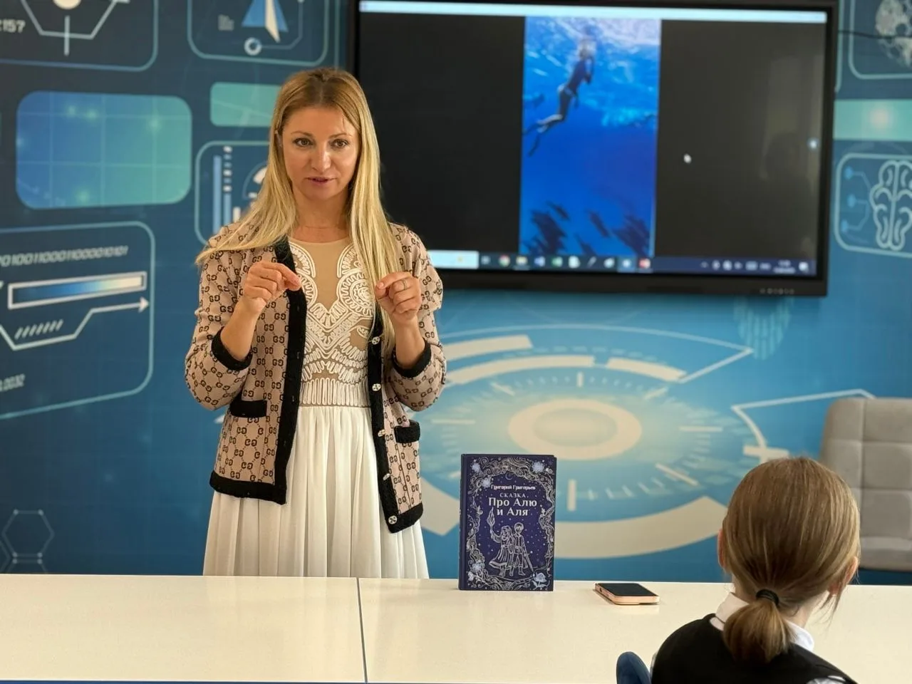 Сегодня в лицее 410 прошёл необычный мастер-класс. Известная телеведущая, журналист и режиссёр Анастасия Дьякова встретилась с учениками 5 и 6 классов, чтобы раскрыть им секреты создания эффектных рилсов - коротких видеоисторий, которые помогают делать книжные проекты нашего лицея интересными и известными.