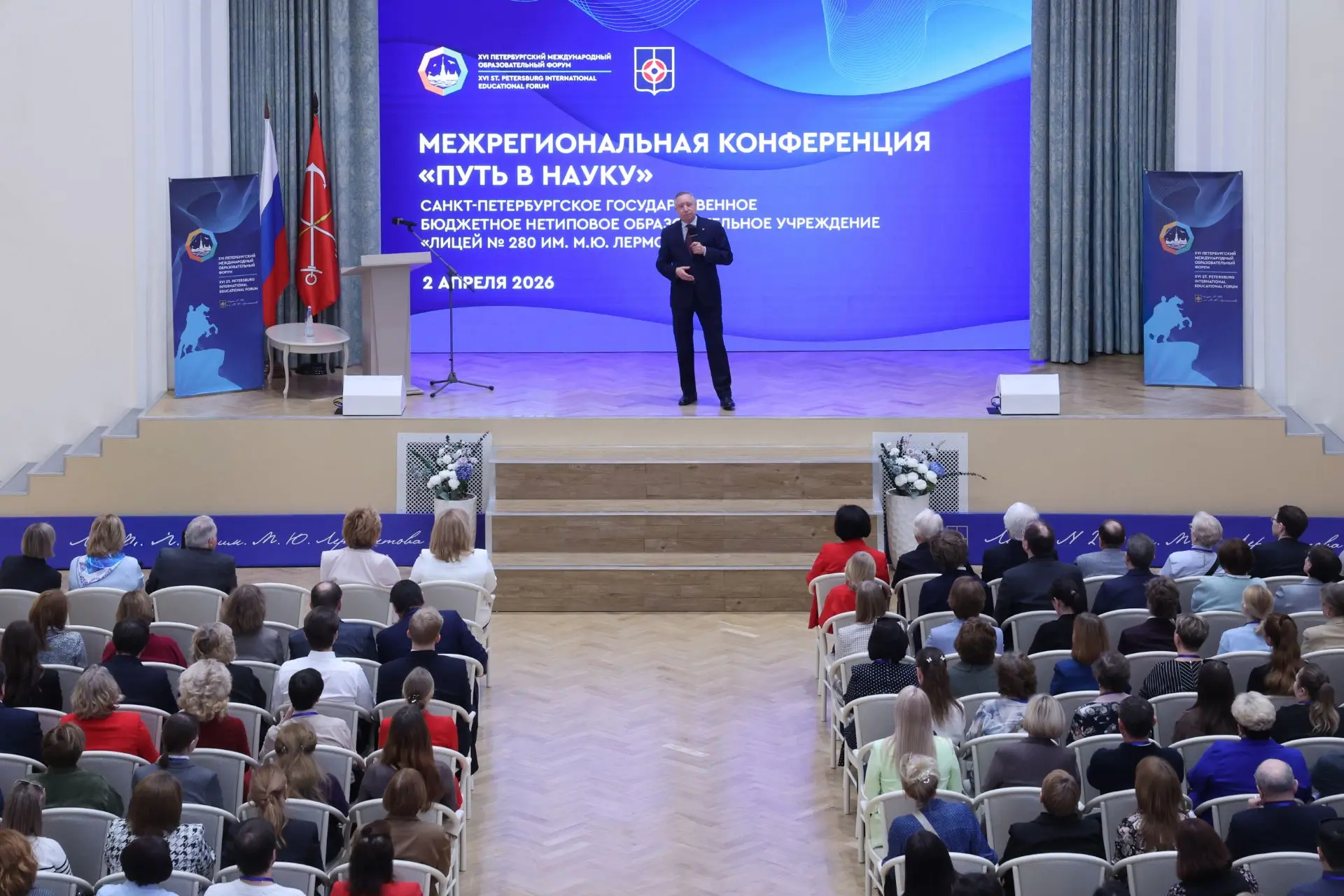 2 апреля 2026 года педагоги ГБОУ лицея № 410 приняли активное участие в ключевом событии деловой программы XVI Петербургского международного образовательного форума — межрегиональной конференции «Путь в науку».