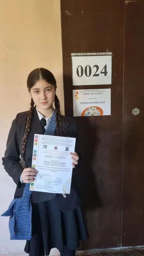 Бабаева Сумайя (7г) "Изготовление вязаный сумки через плечо" (науч.рук.Васильева О.А.)-2е место