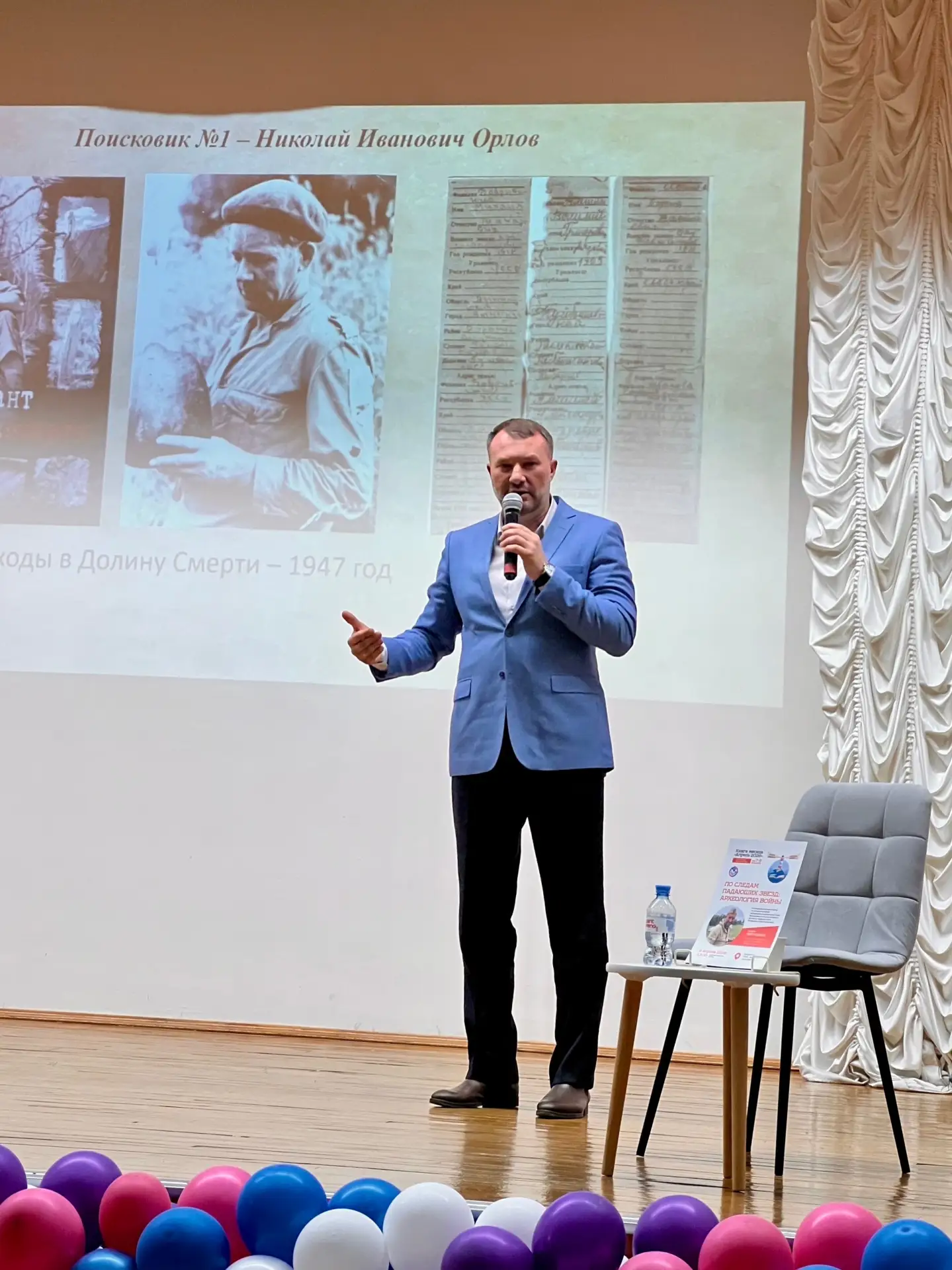 Одним из самых важных моментов мероприятия станет рассказ о том, с чего началась работа над фильмом - с истории новгородских поисковиков экспедиции «Долина», которые подняли из леса самолёт с останками лётчика. В его вещах нашли тот самый, хорошо сохранившийся экземпляр романа «Два капитана».