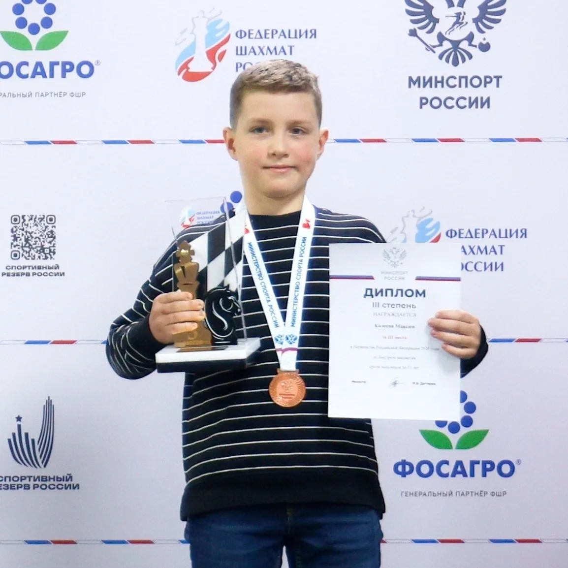 ⚡🥉Ученик 3 Б класса 410 лицея Максим Колесов завоевал бронзовую медаль в ПЕРВЕНСТВЕ РОССИИ по быстрым шахматам среди мальчиков до 11 лет!
