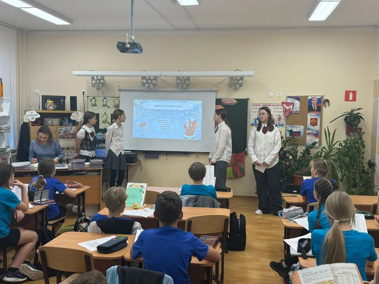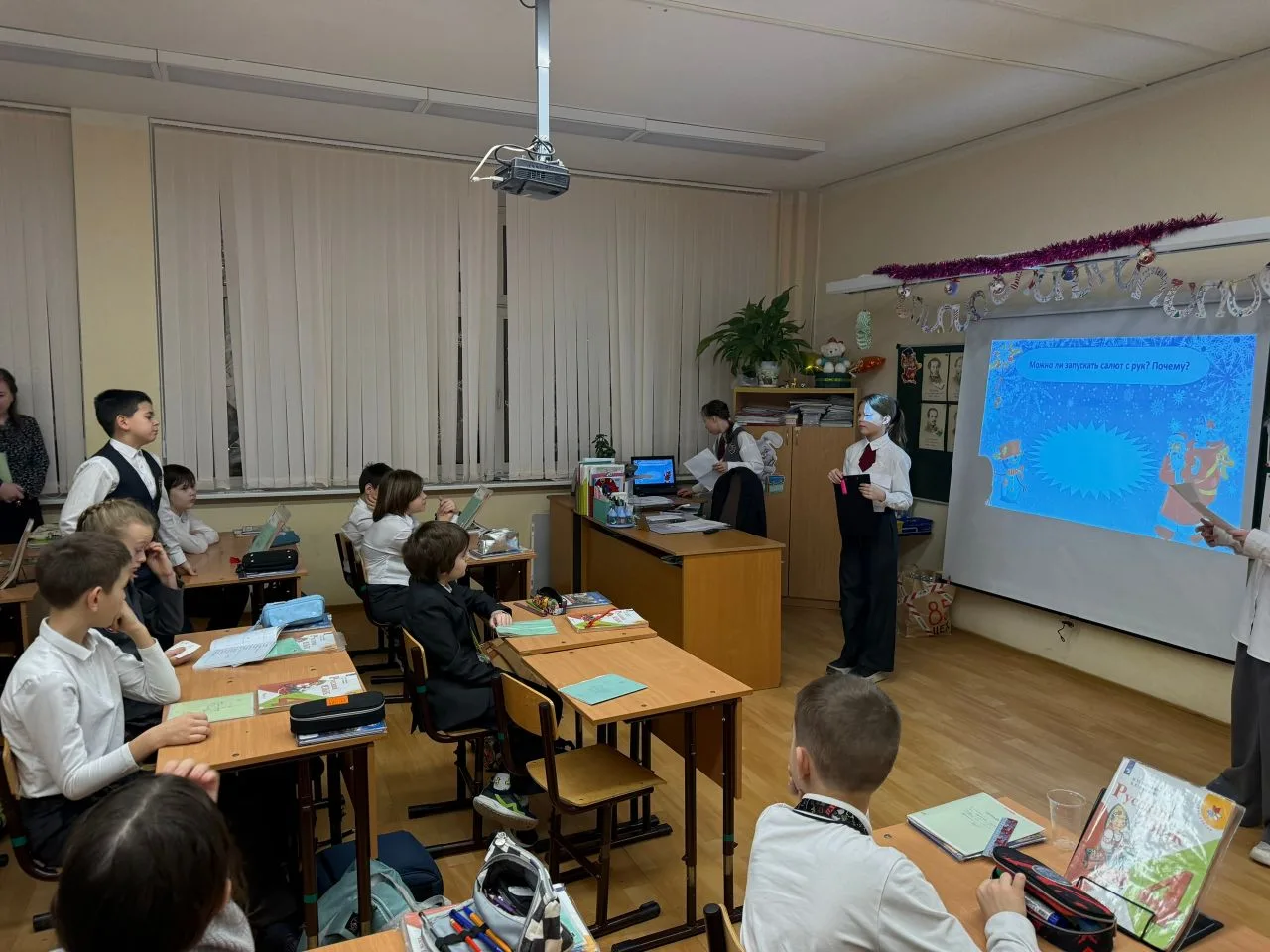 Ребята в конце четверти провели классные часы для учащихся 3–4 классов на тему «Безопасный Новый год».