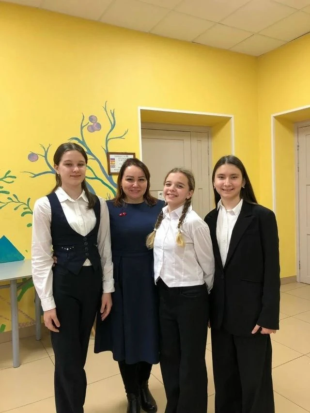 ученица 7 «Д» класса Раяна Курбанова, ученица 7 «Е» класса Марина Заякина, ученик 9 «А» класса Егор Голубев.