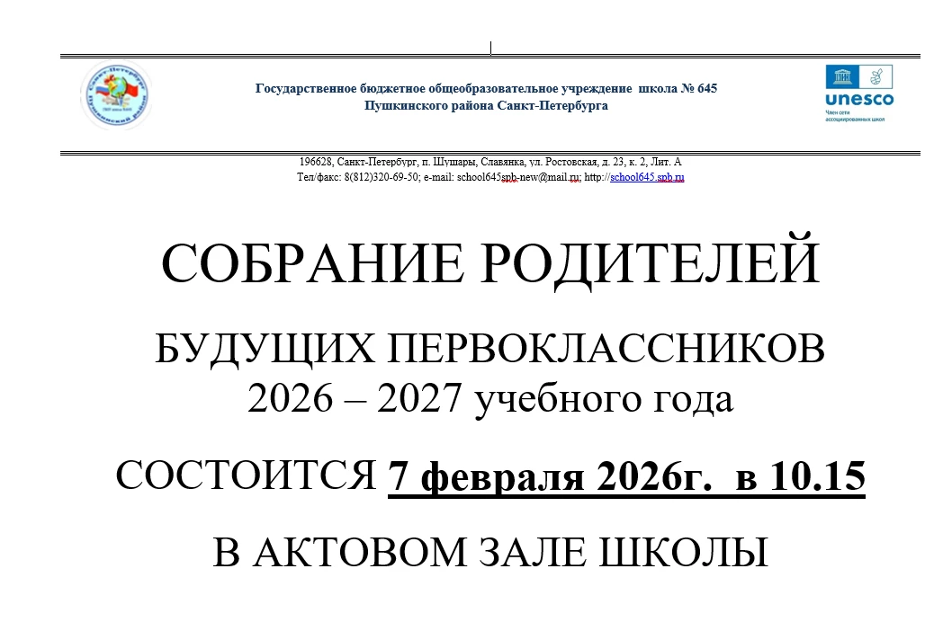 С 2019 года школа 645 Пушкинского района является Членом сети Ассоциированных школ ЮНЕСКО.
