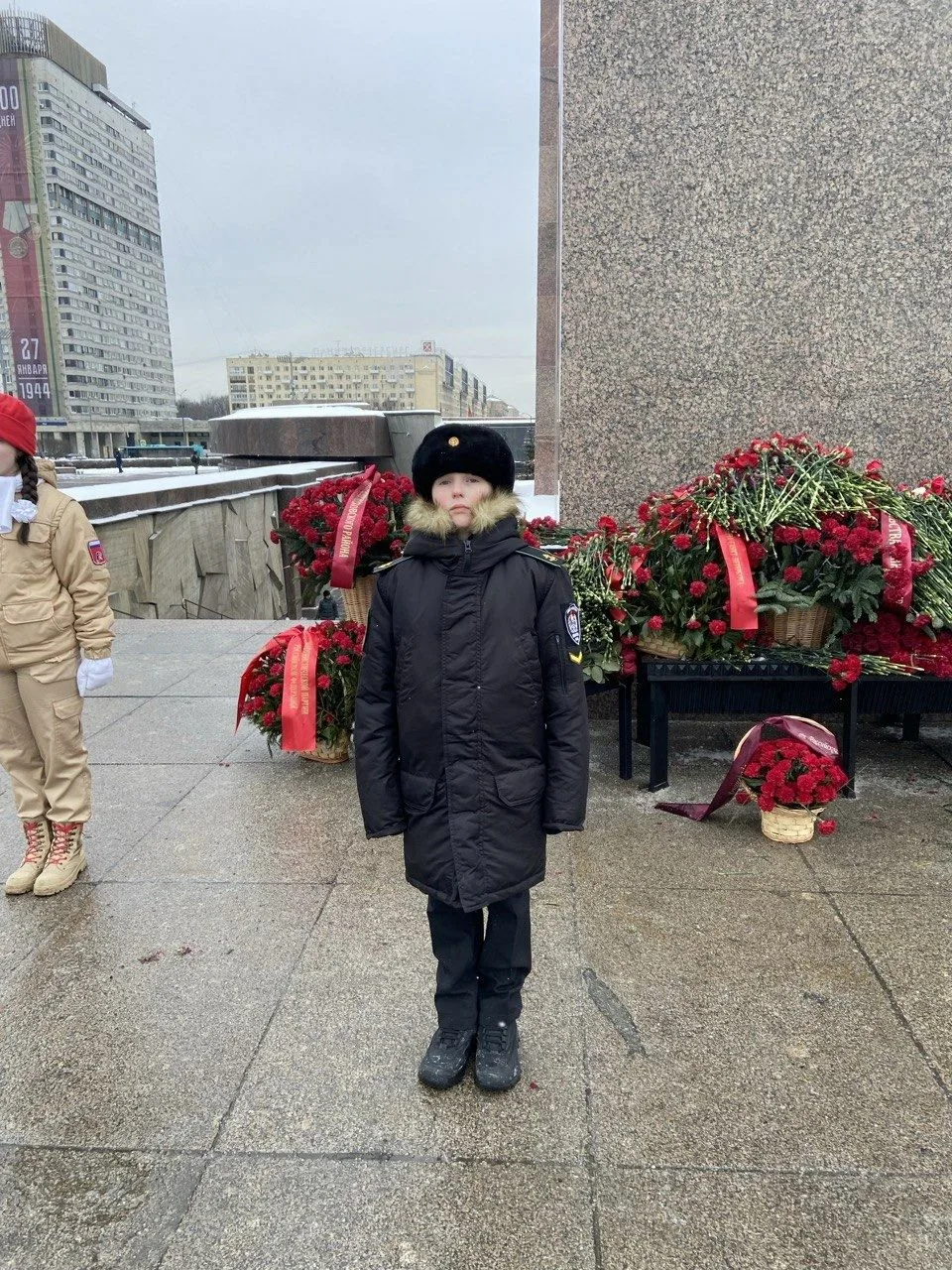 Кадеты 6К класса, вместе с педагогом-организатором Прудниковой В.А., склонили головы у Мемориала "Непокорённые", где в торжественном молчании прошёл митинг, посвящённый 82-й годовщине полного освобождения Ленинграда от кошмарного фашистского кольца в годы Великой Отечественной войны.