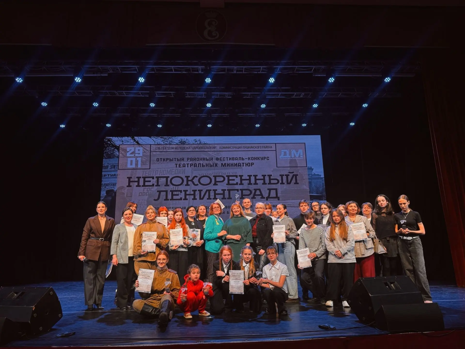 28 января в Музейно-выставочном центре «Россия – моя история» состоялось памятное районное мероприятие, приуроченное ко Дню полного освобождения Ленинграда от фашистской блокады: «Всё это было, было в Ленинграде».В мероприятии принимали участие хореографические, театральные и вокальные коллективы, выступления которых оставили сильное эмоциональное впечатление у зрителей, помогли проникнуться атмосферой того страшного и героического времени.Наши учащиеся: Куслий Тимофей, Никандрова Полина, Лютюк Ростислав, Золотухина Екатерина (педагог – Никандрова Ангелина Николаевна) – были награждены Сертификатом участников открытого Марафона видеороликов «Над Ленинградом смертная угроза… Бессонны ночи, тяжек день любой» (872 поэтические строки о блокаде Ленинграда).