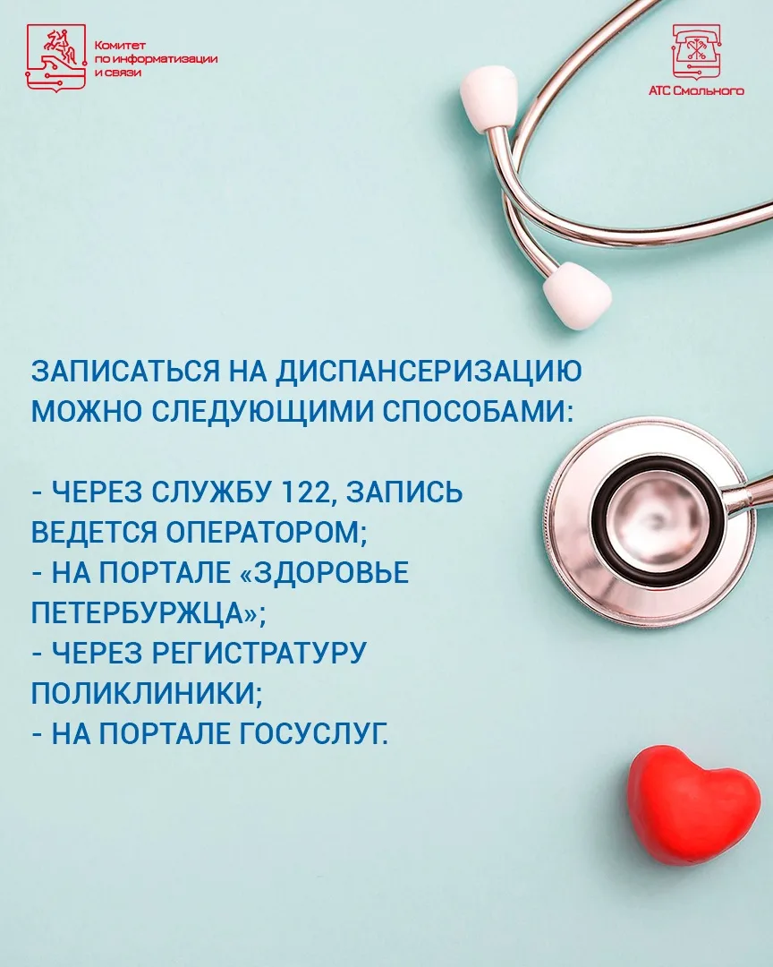 💉 Петербуржцам в поддержании здорового образа жизни помогает Служба 122 - круглосуточно и бесплатно вы можете записаться на приём к врачу; на диспансеризацию; оформить запись на медицинские исследования; вызвать врача на дом.