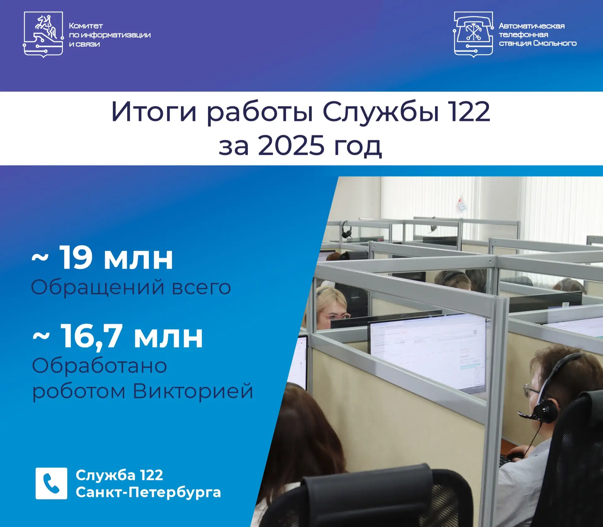 Служба 122 Санкт-Петербурга за 2025 год обработала 19 миллионов обращений граждан