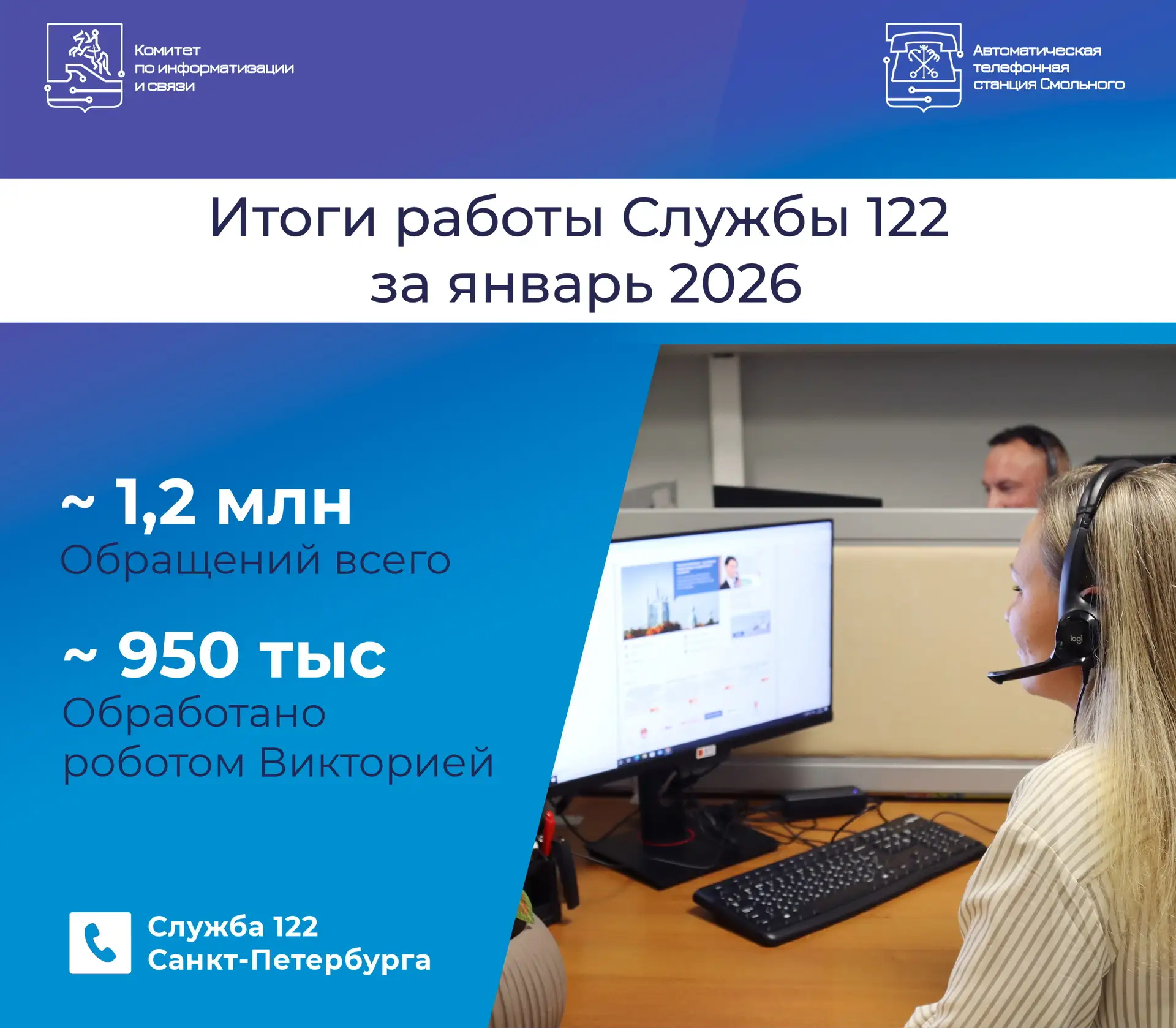 📊 В январе 2026 года Служба 122 получила и обработала более 1,2 миллиона обращений от жителей города – в среднем около 39 тысяч звонков в день.