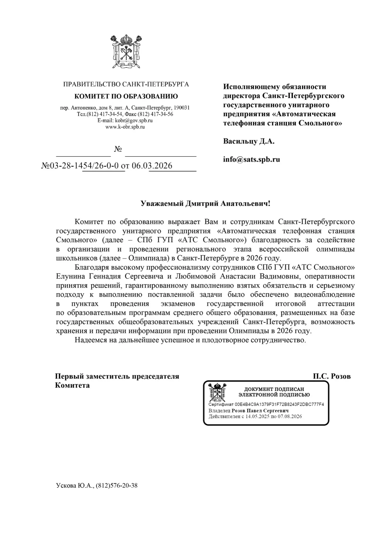 👍 Комитет по образованию высоко оценил усилия коллектива АТС Смольного, отметив оперативность действий, ответственность и серьезность подхода к решению поставленных задач. Полученный положительный опыт станет основой для дальнейшего совершенствования системы видеонаблюдения и успешного проведения будущих этапов олимпиады и других крупных образовательных мероприятий в Санкт-Петербурге.
