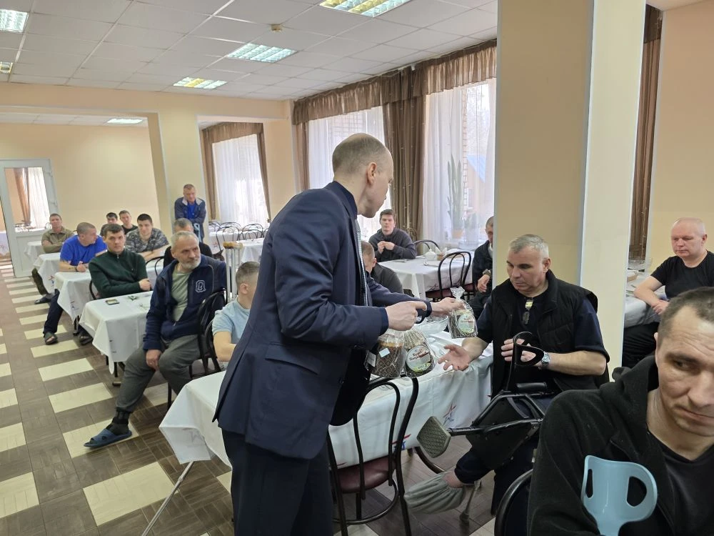 Гости передали бойцам освящённые куличи — символ пасхальной радости и домашнего уюта, а также сладкие подарки, пообщались с каждым, пожелали скорейшего восстановления и крепкого здоровья.