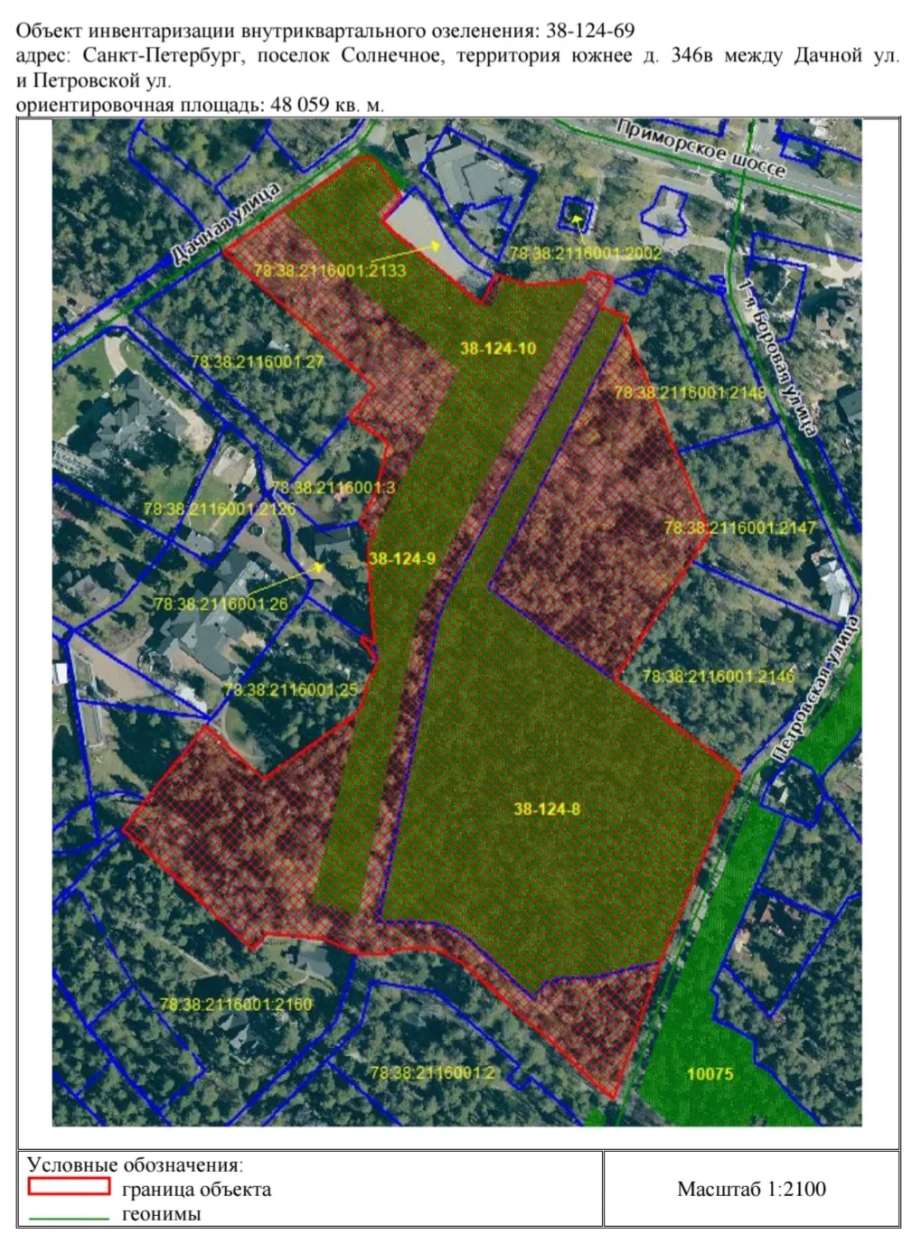 - 210 тысяч квадратных метров (21 га) отнесены к ЗНОП резерва озеленения.
