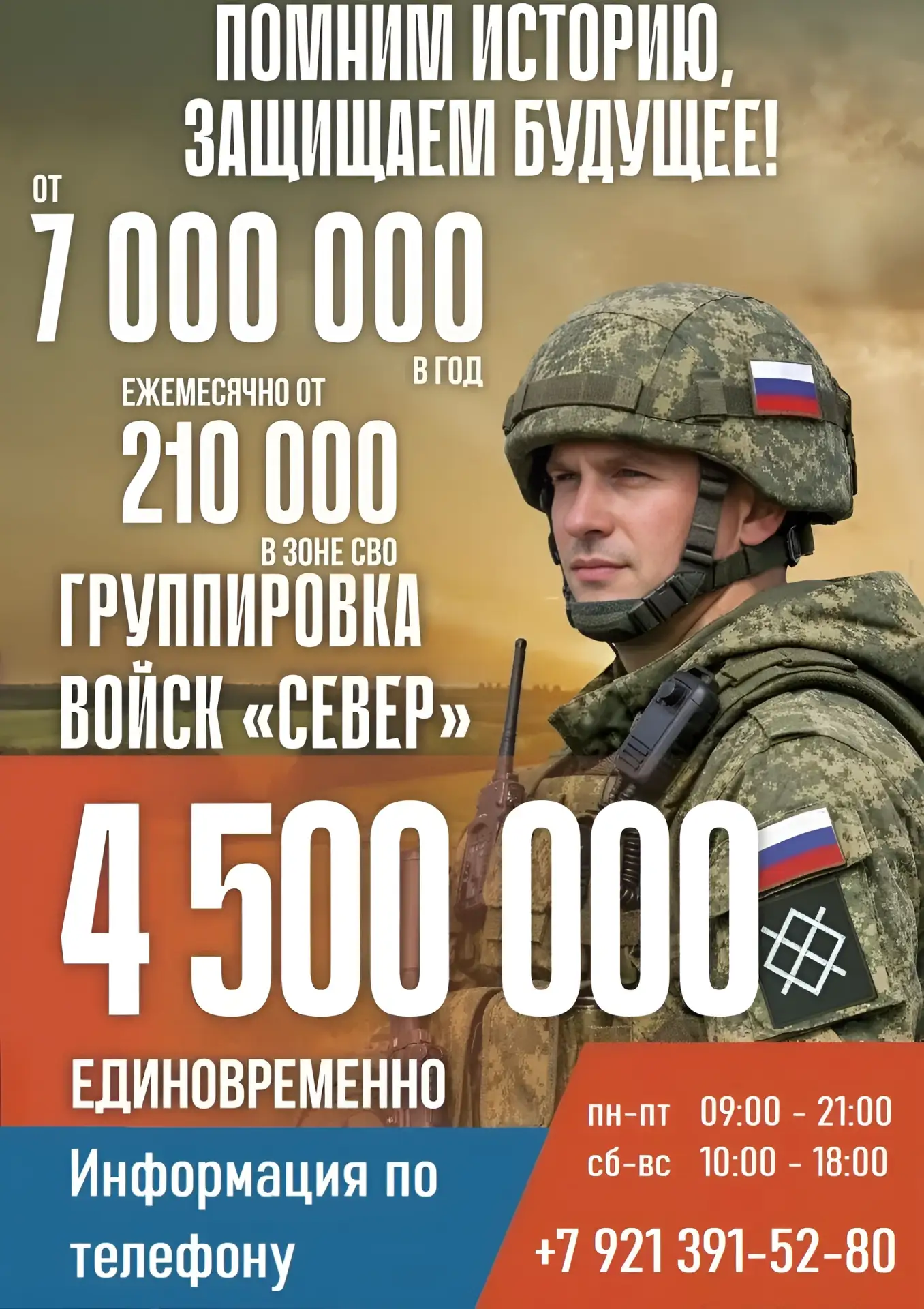 Более подробную информацию о возможности службы в конкретном подразделении, условиях контракта, выплатах и социальных гарантиях можно узнать по телефону 👉 +7-921-391-52-80.