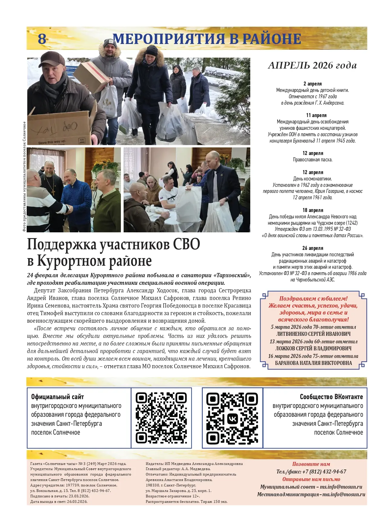 Газета «Солнечные часы», выпуск №3 март 2026