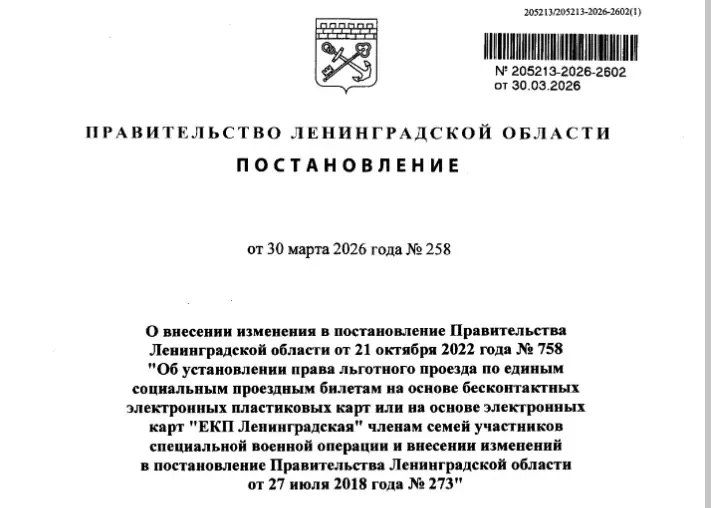 Губернатор Ленинградской области подписал постановление, упрощающее получение льготного проезда на железнодорожном транспорте для детей участников СВО. Теперь эта мера предоставляется ребёнку автоматически, если у него уже есть льгота на проезд на автомобильном транспорте.
