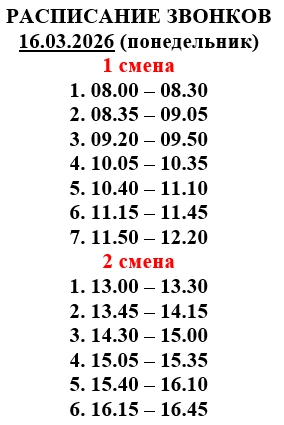 🚩В связи с подготовкой к Всероссийскому тренировочному мероприятию пункта проведения экзаменов, организованного на базе МБОУ «СОШ № 1 им. Созонова Ю.Г.», режим работы школы на 16.03.2025 изменен.