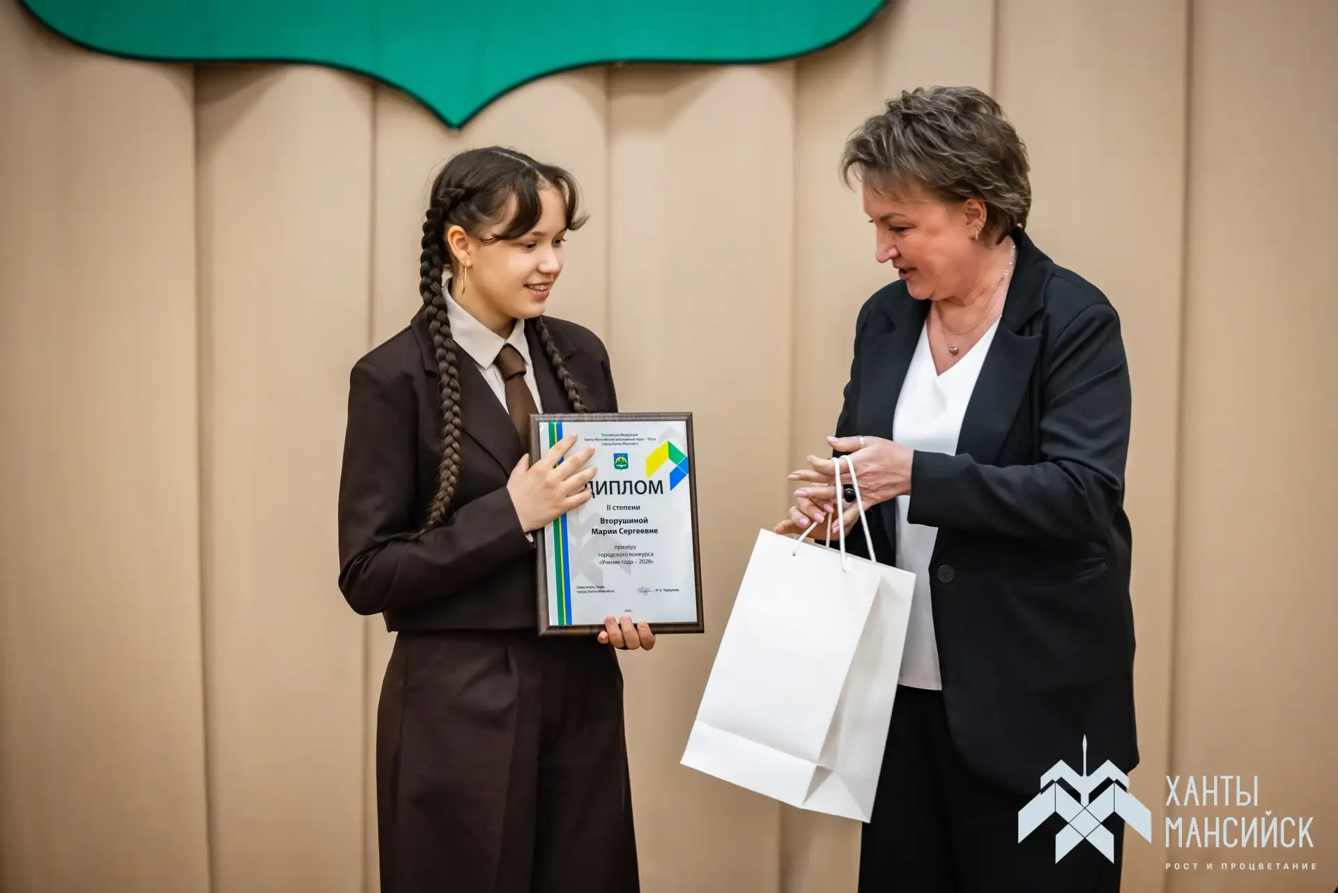 🏆 Участники продемонстрировали не только глубокие знания, но и творческие способности, артистизм и спортивные достижения, завоевав симпатии зрителей. Заслуженные награды конкурсантам вручила заместитель директора Департамента образования Администрации Ханты-Мансийска Оксана Фёдорова.