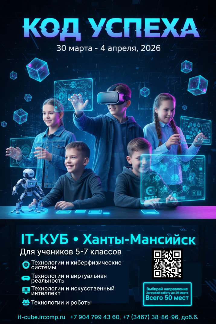 IT-куб приглашает учащихся 5-7 классов принять участие в мероприятии «КОД УСПЕХА: весенняя смена информационных технологий», для участия необходимо подать заявку по ссылке: https://it-cube.ircomp.ru/.